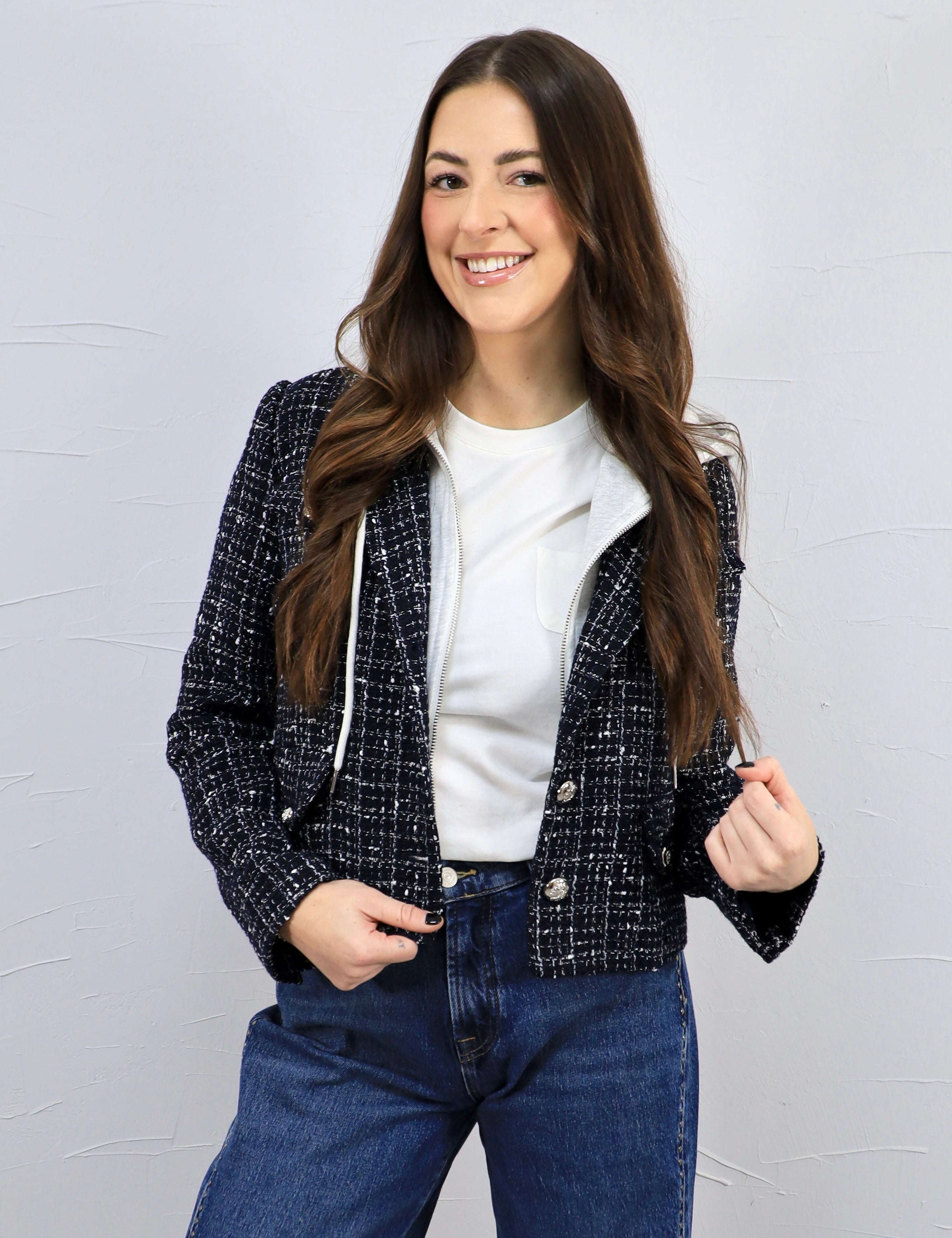 Brooklyn's Tweed Hooded Blazer