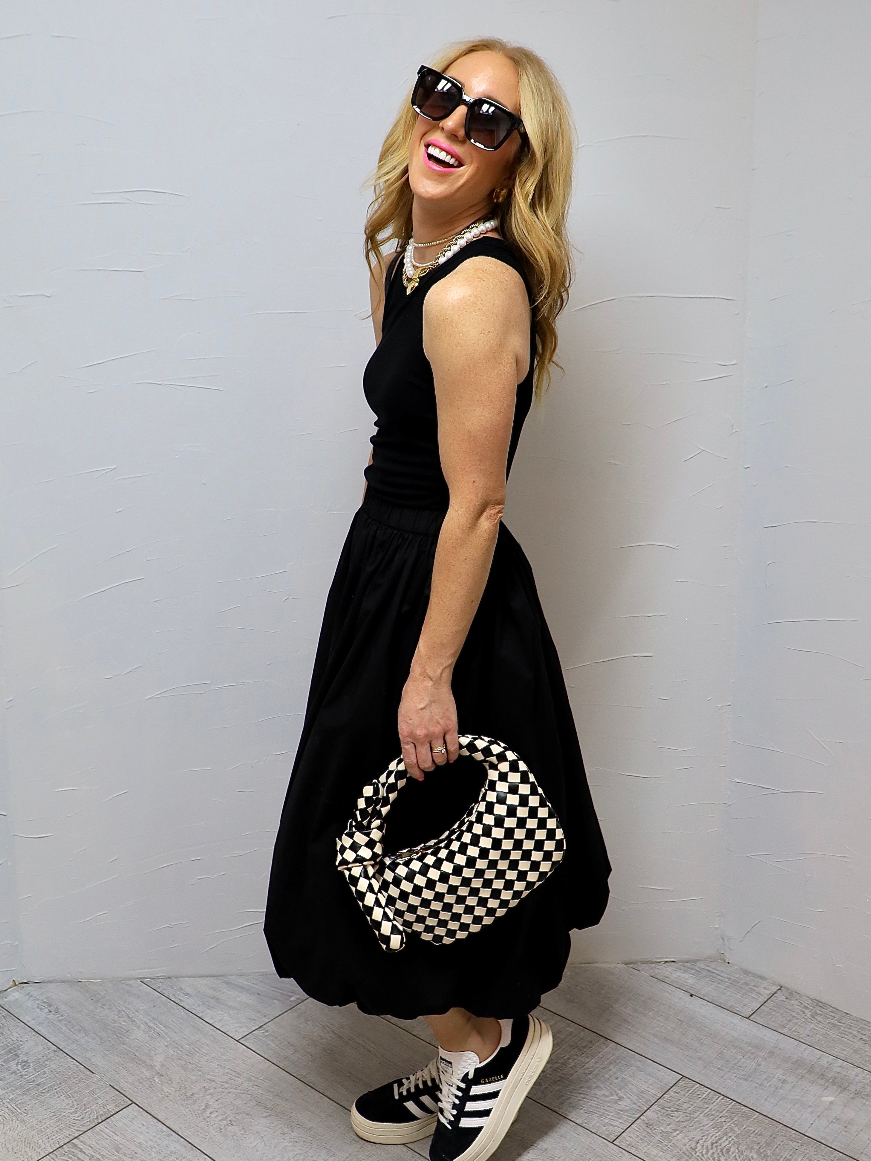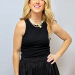 Add this black tank top to your wardrobe - perfect for layering under an oversized off-the-shoulder sweater and denim for a laid-back, effortless look, on-the-go