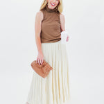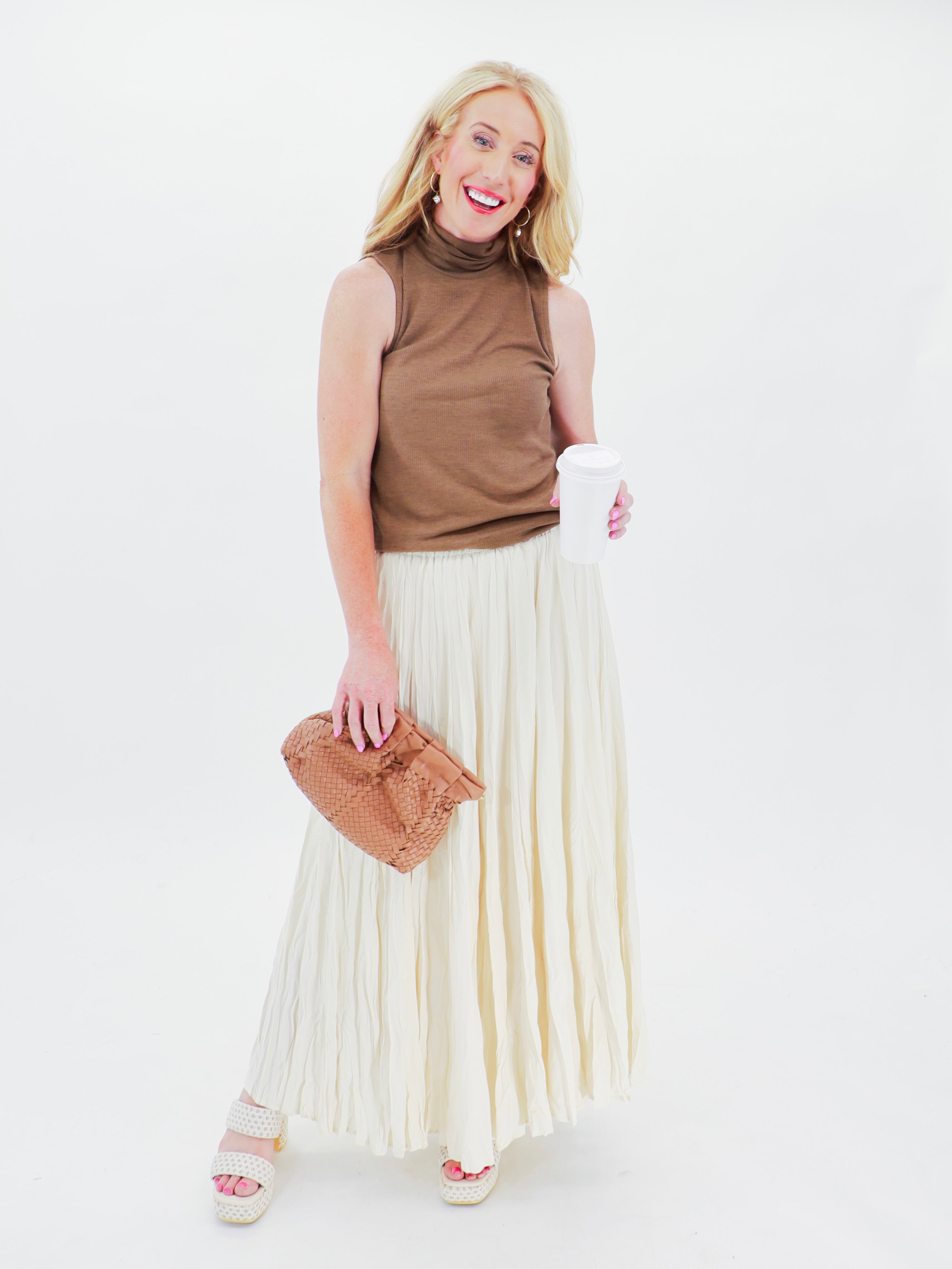 As we transition into fall, the Marian Top will be your go-to for easy and elevated styles. Pair with our Bruno Denim Skirt and slides and you are ready to head to your next brunch date in style!
