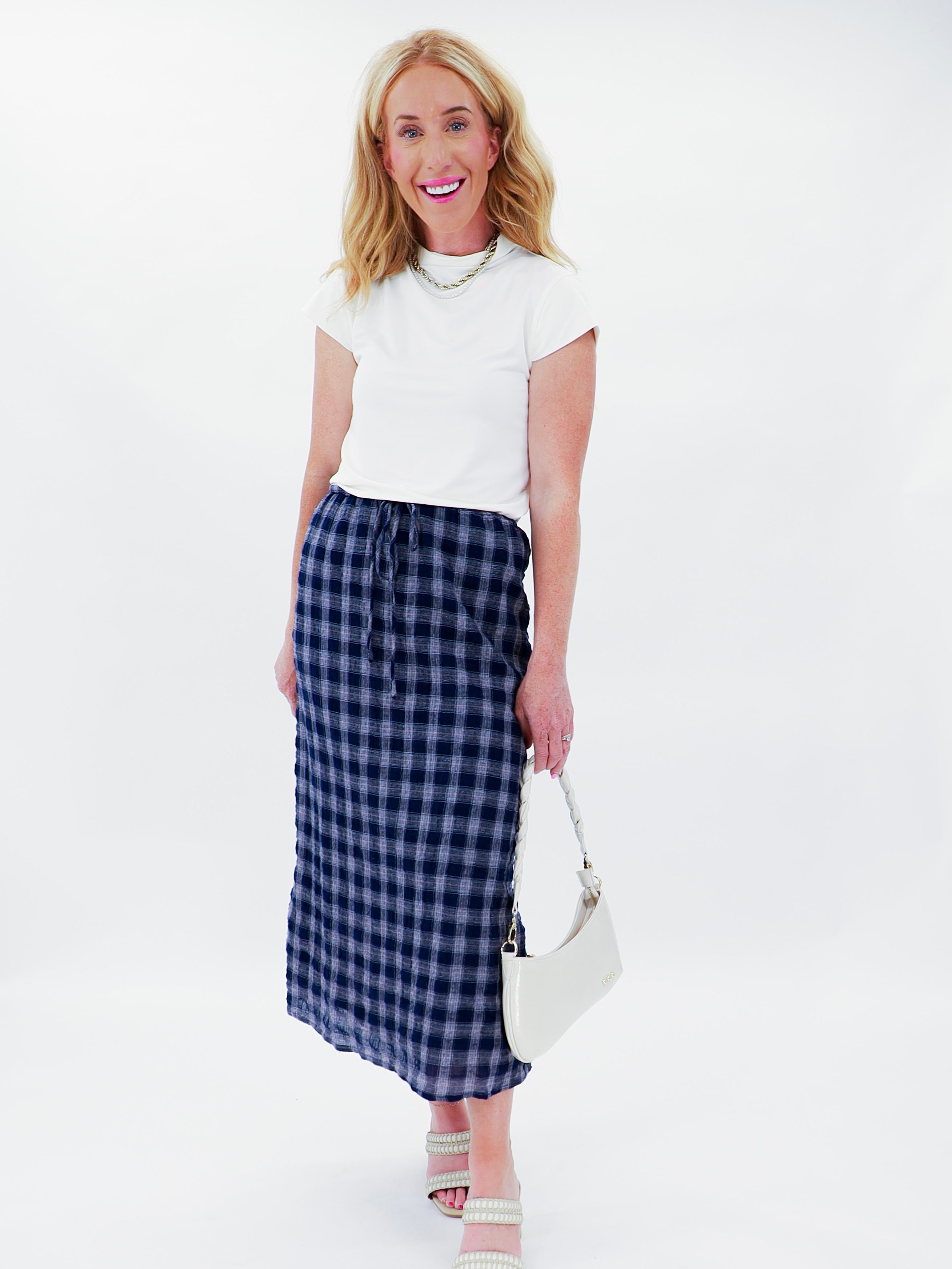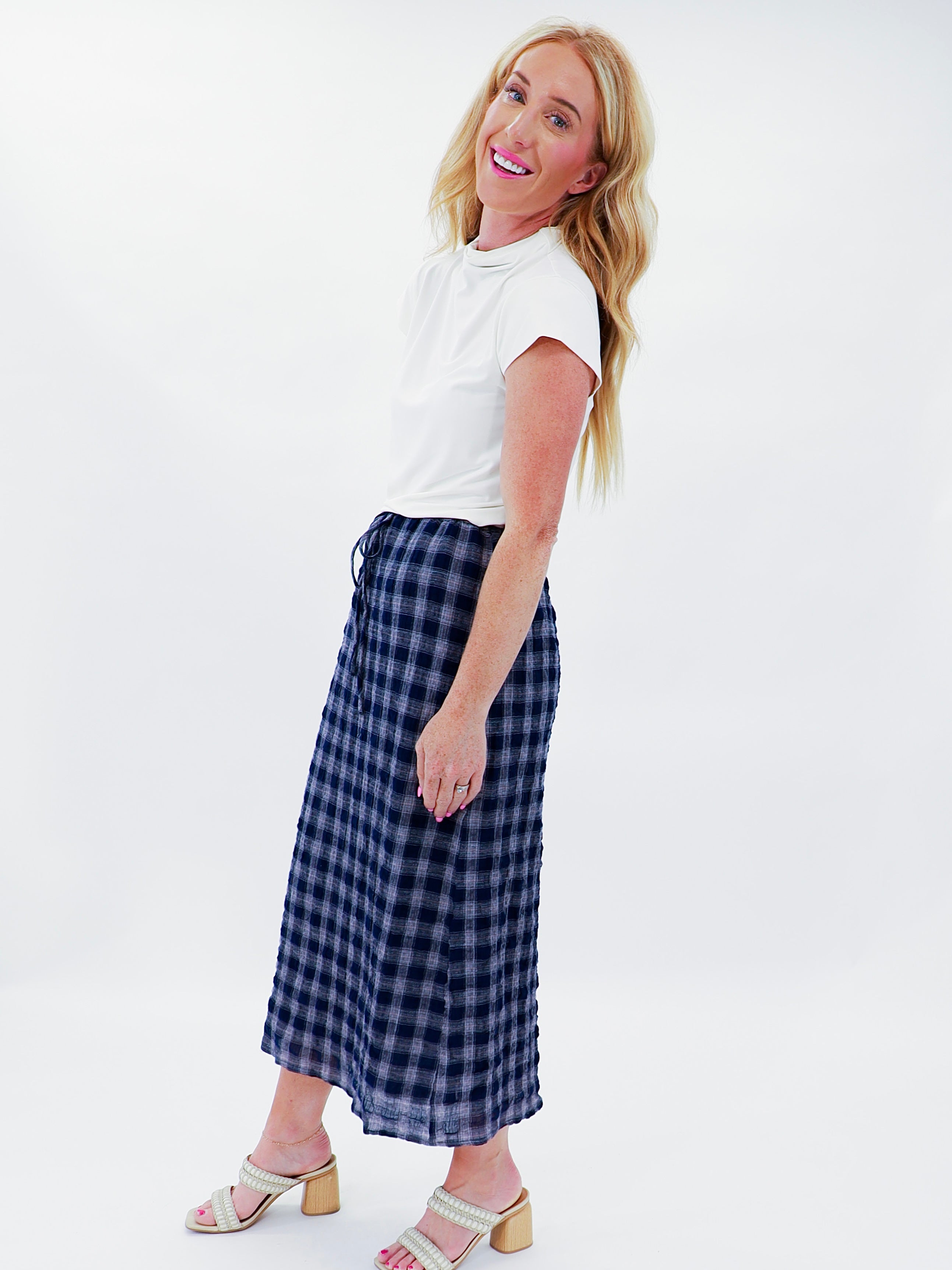 Get ready for fall with this adorable textured skirt! You can dress it down with sneakers and a tee for running errands, or dress it up with booties and a cozy sweater for all your autumn activities. So versatile and cute!