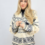 - Classic winter-inspired pattern with contrast detailing