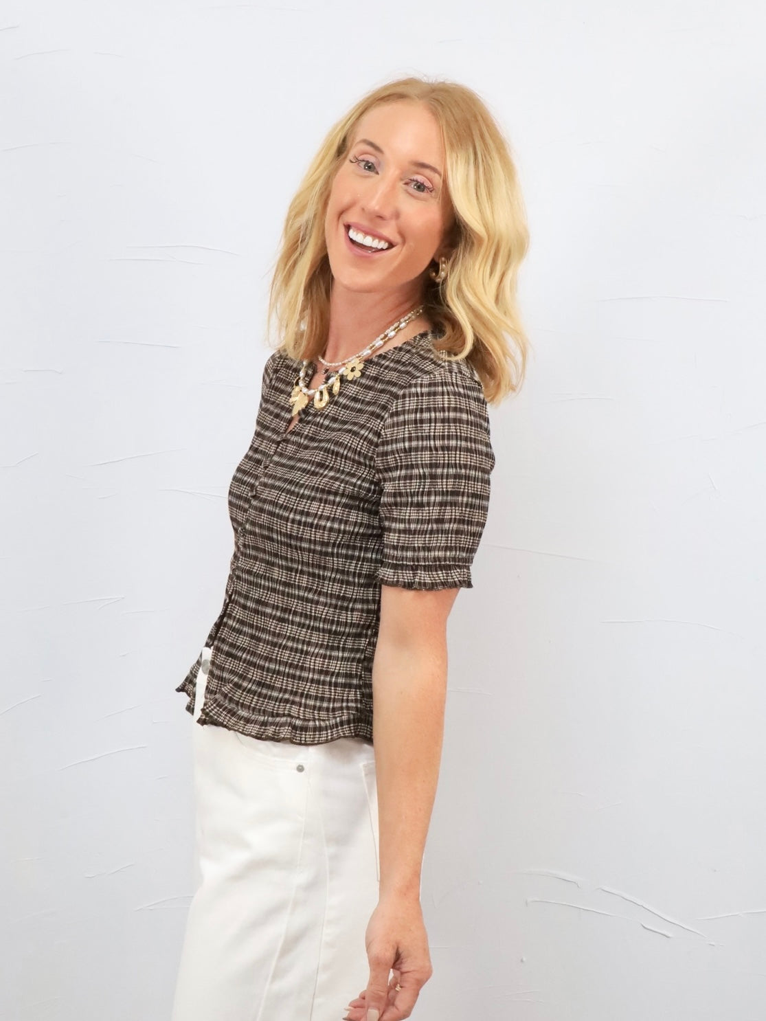 This charming top brings all the 90's feels! Team it with Get It Barrel Denim and slides for a carefree, stylish look that's perfect for wherever your day takes you