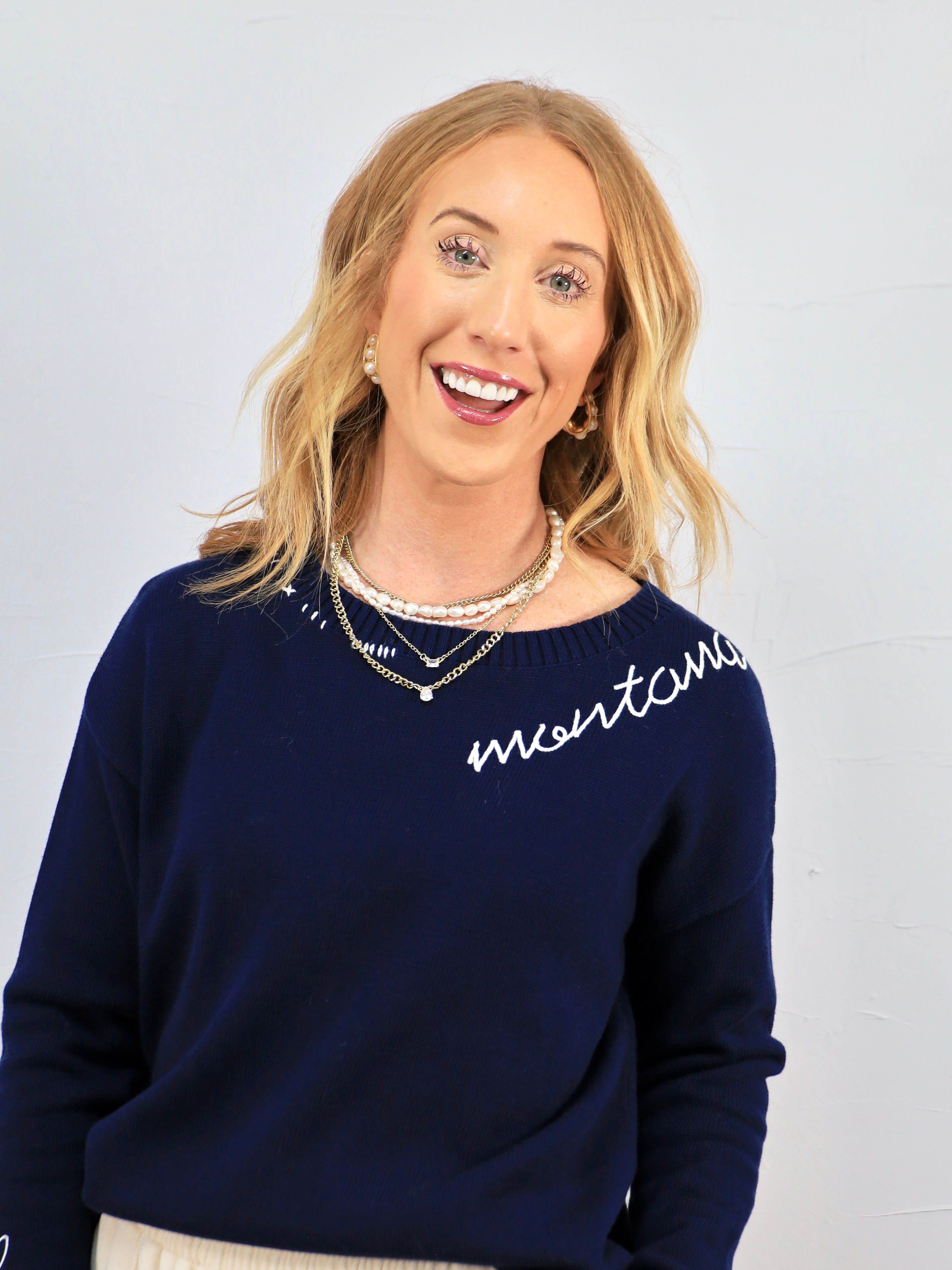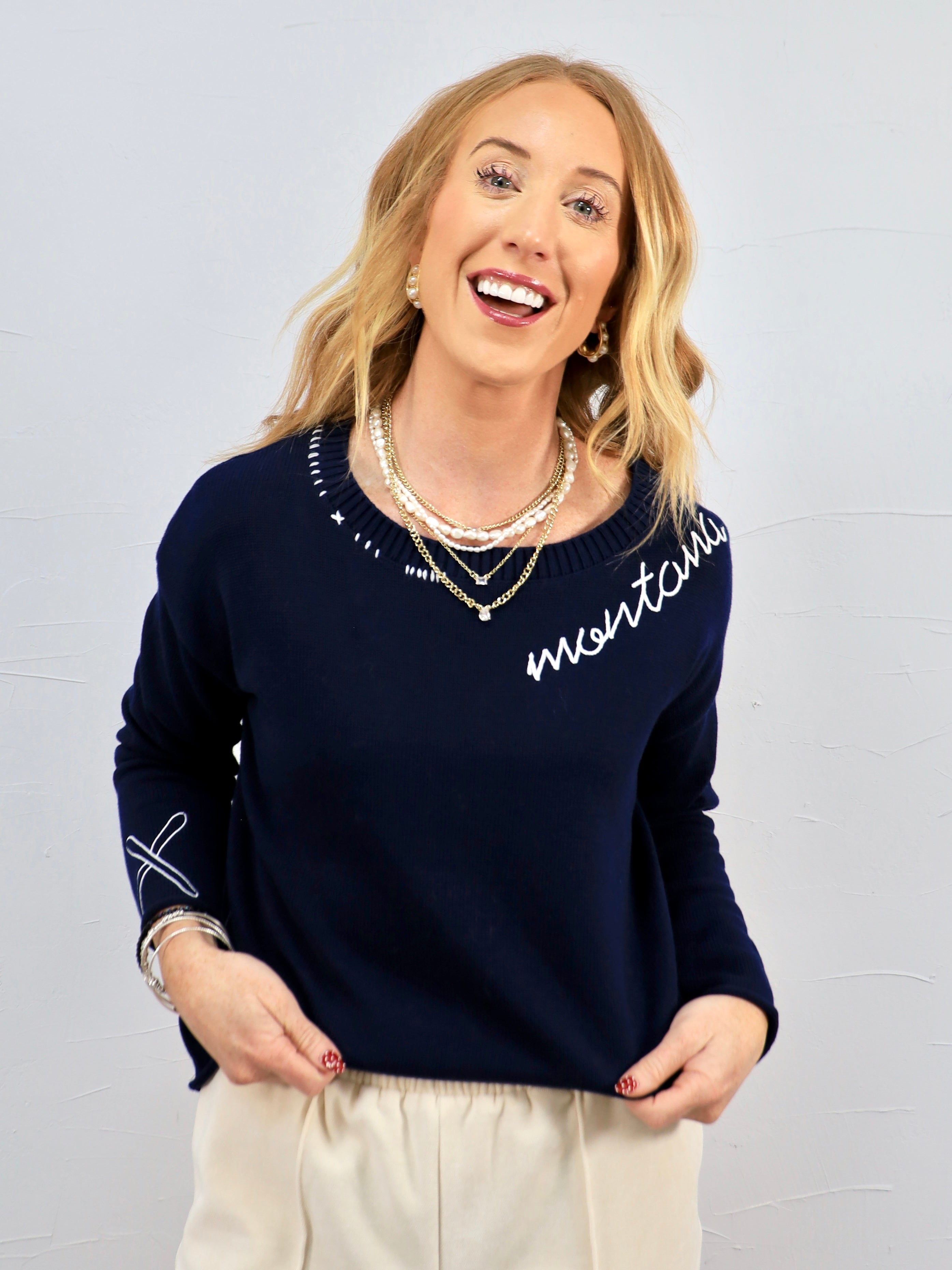 - Sweater says ‘Montana' on neckline
