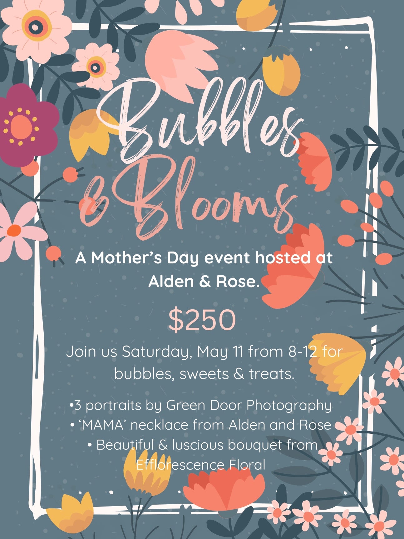 If you have any questions please email hello@aldenandrose.com with a subject line of 'Mother's Day Event"