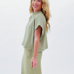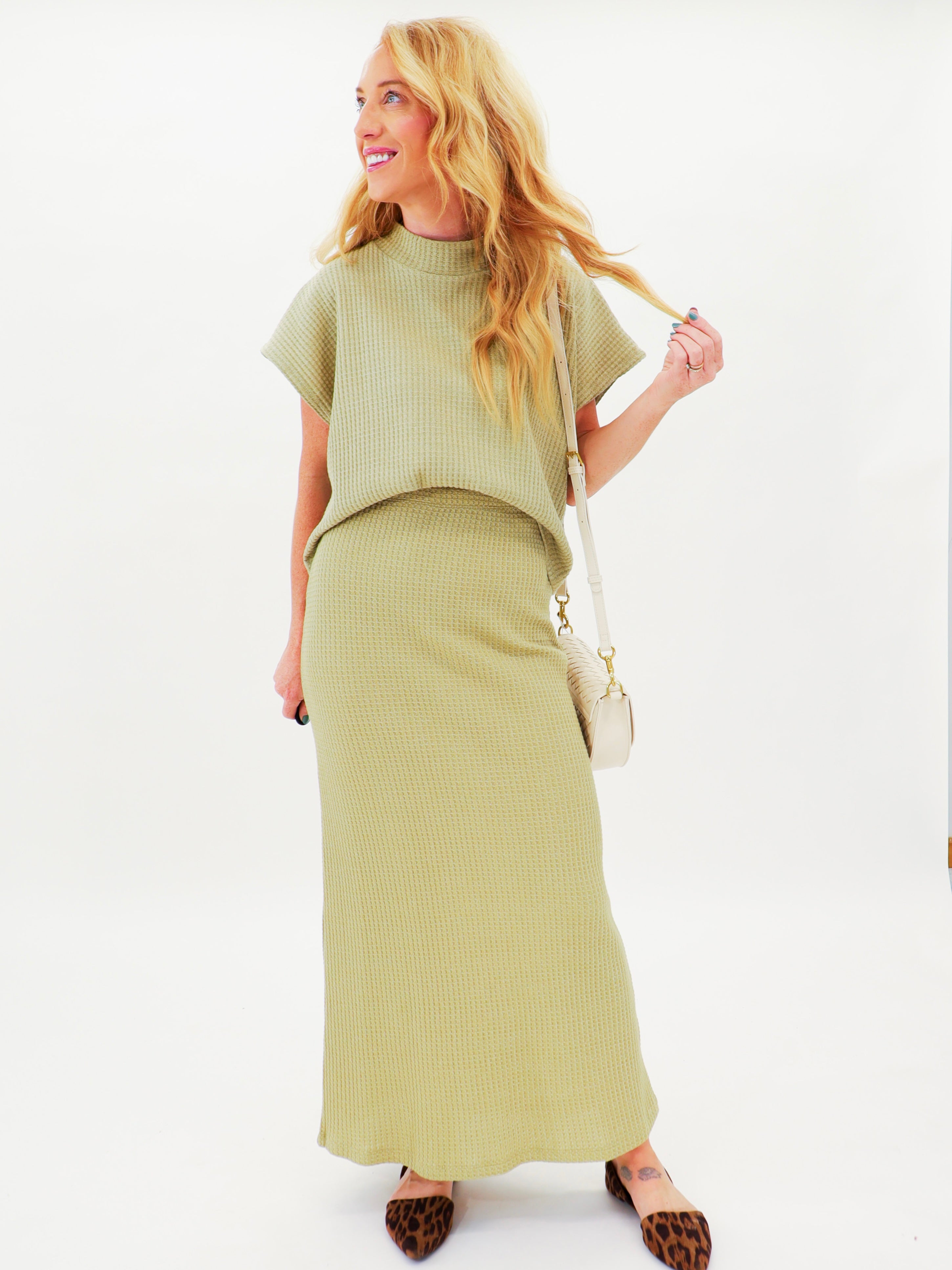 A charming new top that effortlessly pairs with the coordinating skirt or mixes and matches with your favorite denim for a cozy and stylish look that lasts all day!