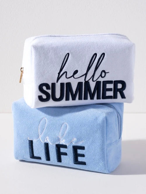 Carry all your odds and ends in style with our "Summer Life" zip pouch, bring on the boat or throw in your lake tote bag to store all the things in style.