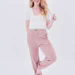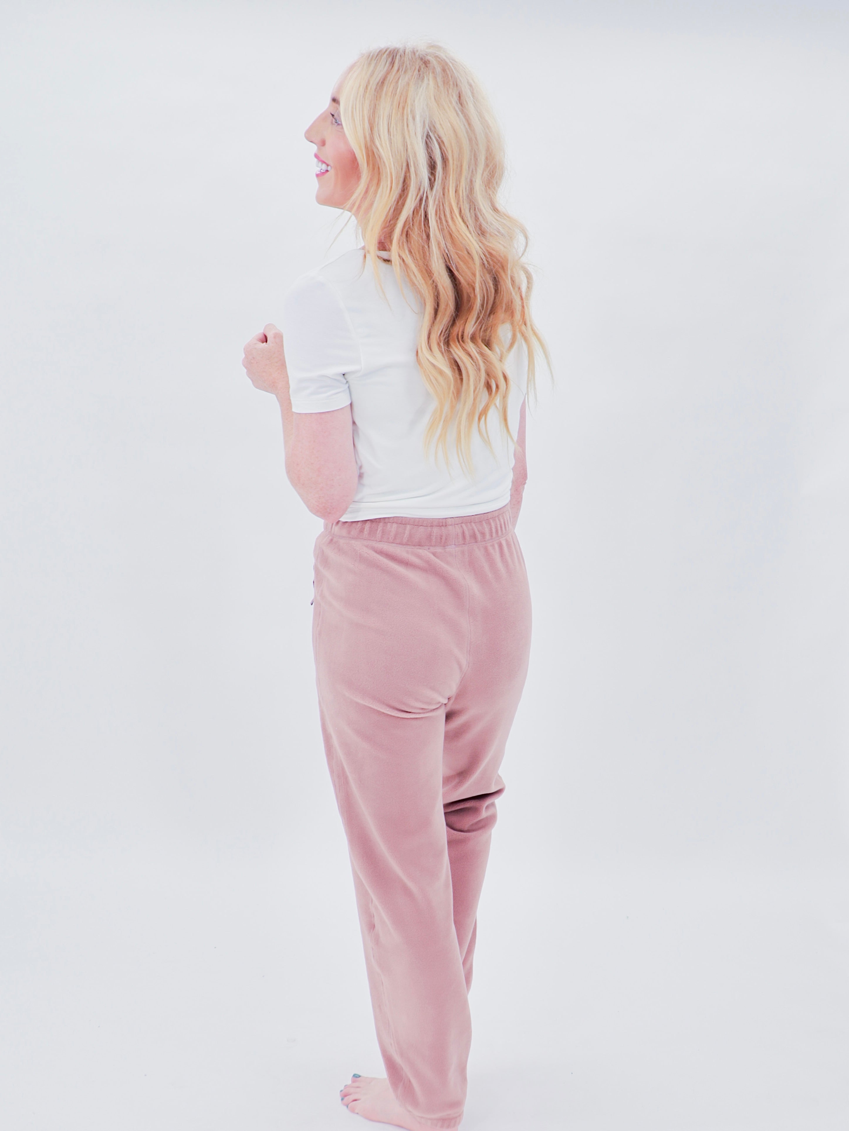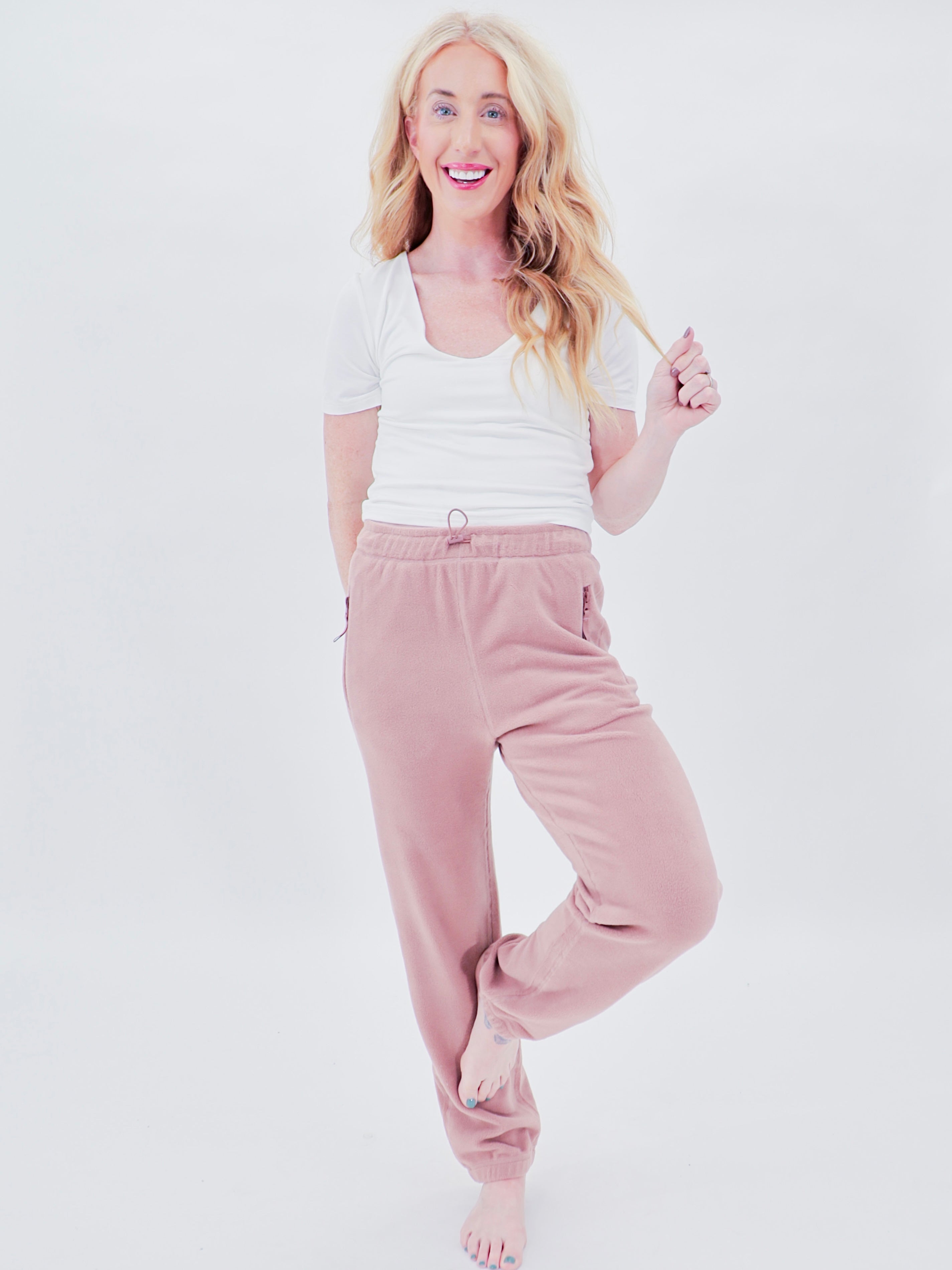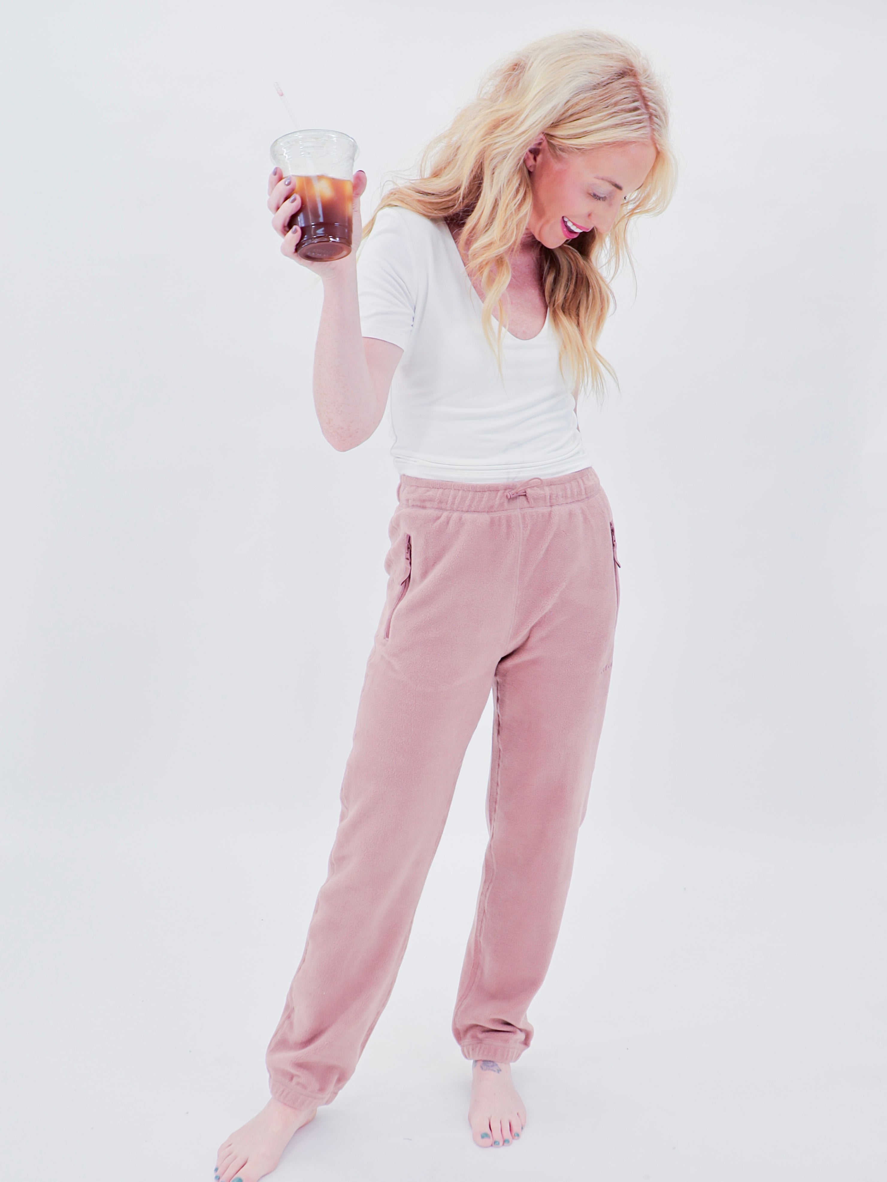 Stay Cozy and warm in our latest Riley Fleece Joggers. These cute and cozy joggers pair perfectly with the matching top, so a basic white tee and slides for a easy on-the-go look!