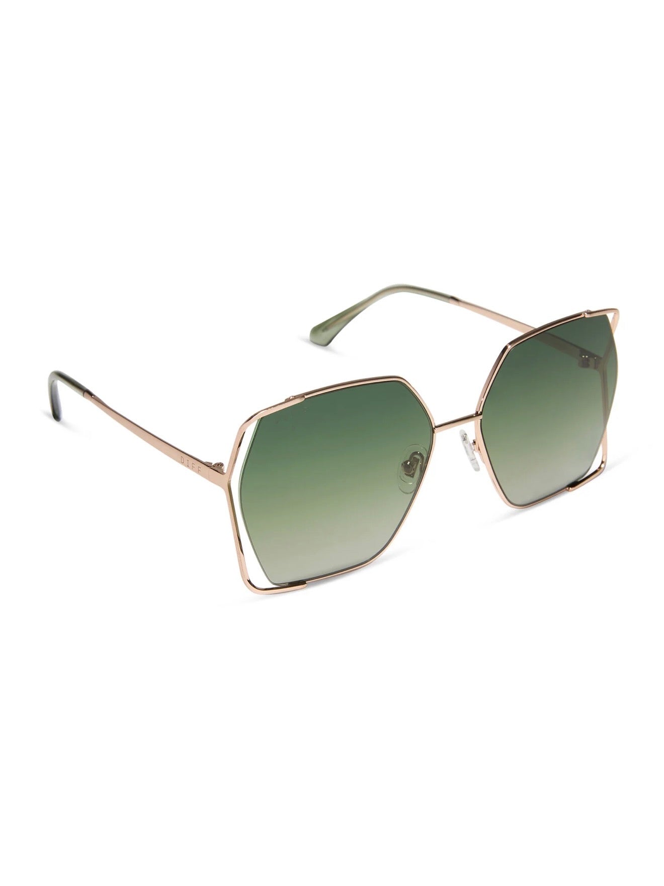 We just can't get enough of the Donna Sunnies! Thin metal frames and large luxe lenses give off effortless glam vibes, while geometric shaping and lens gaps give the Donna just the right amount of edge to make these frames pop.