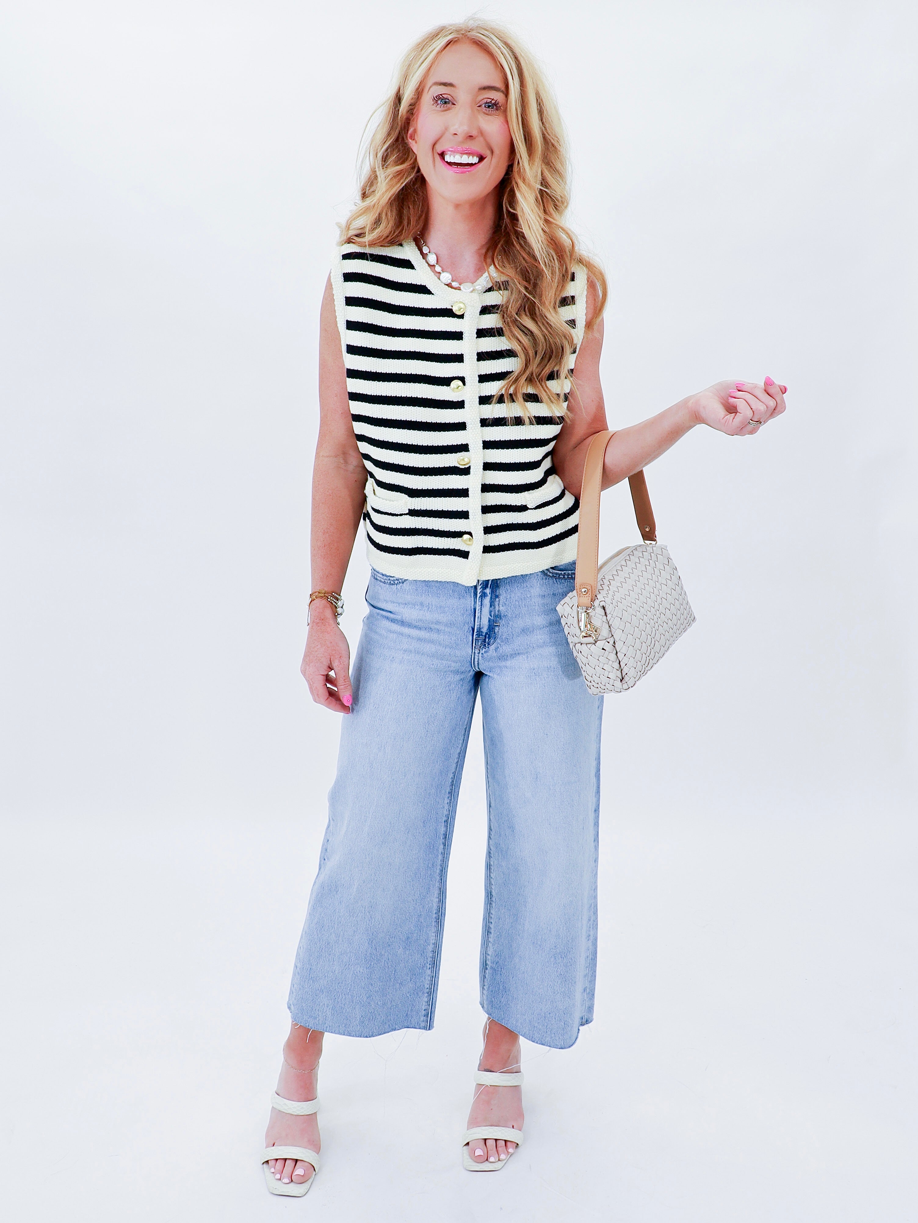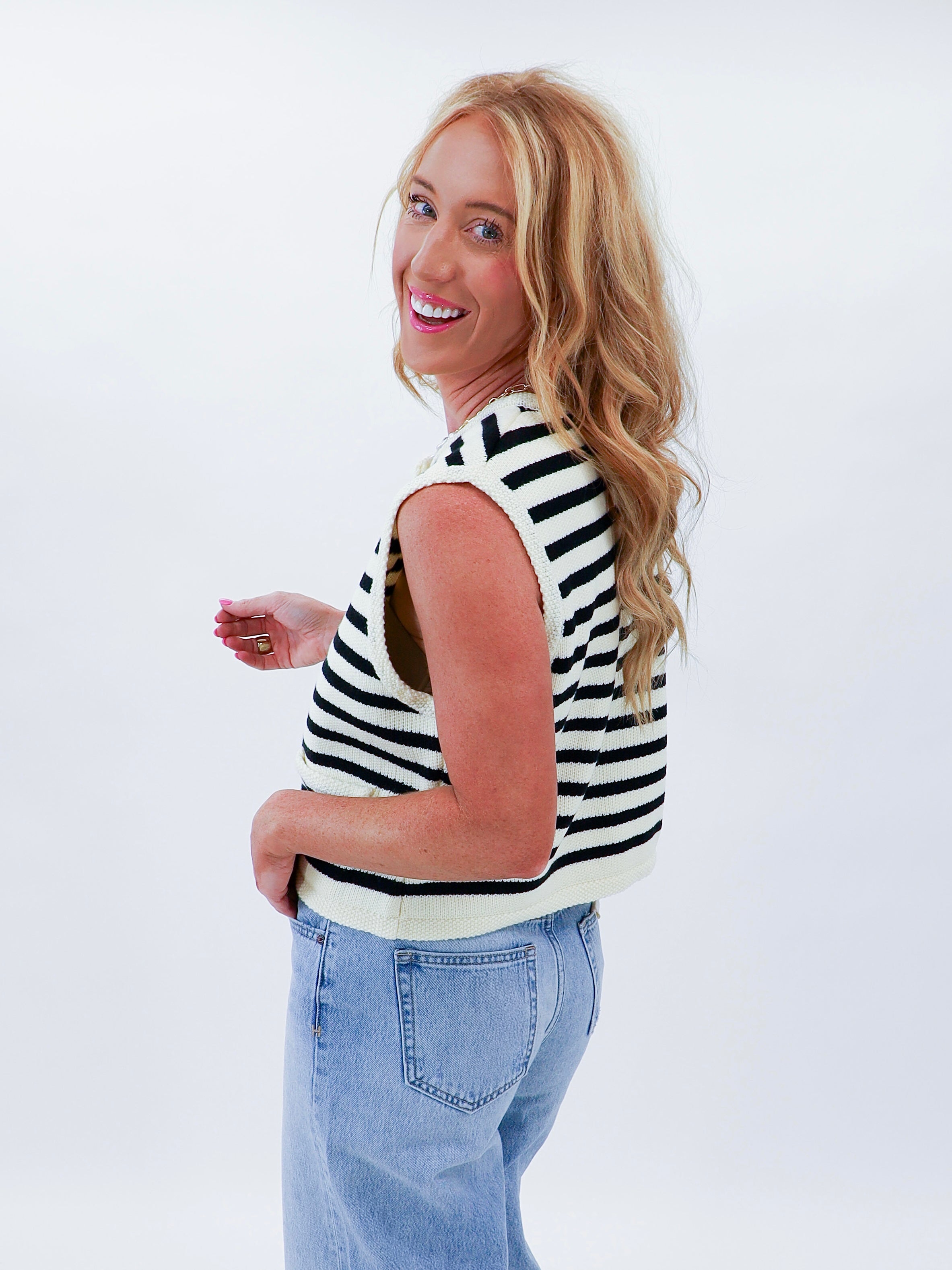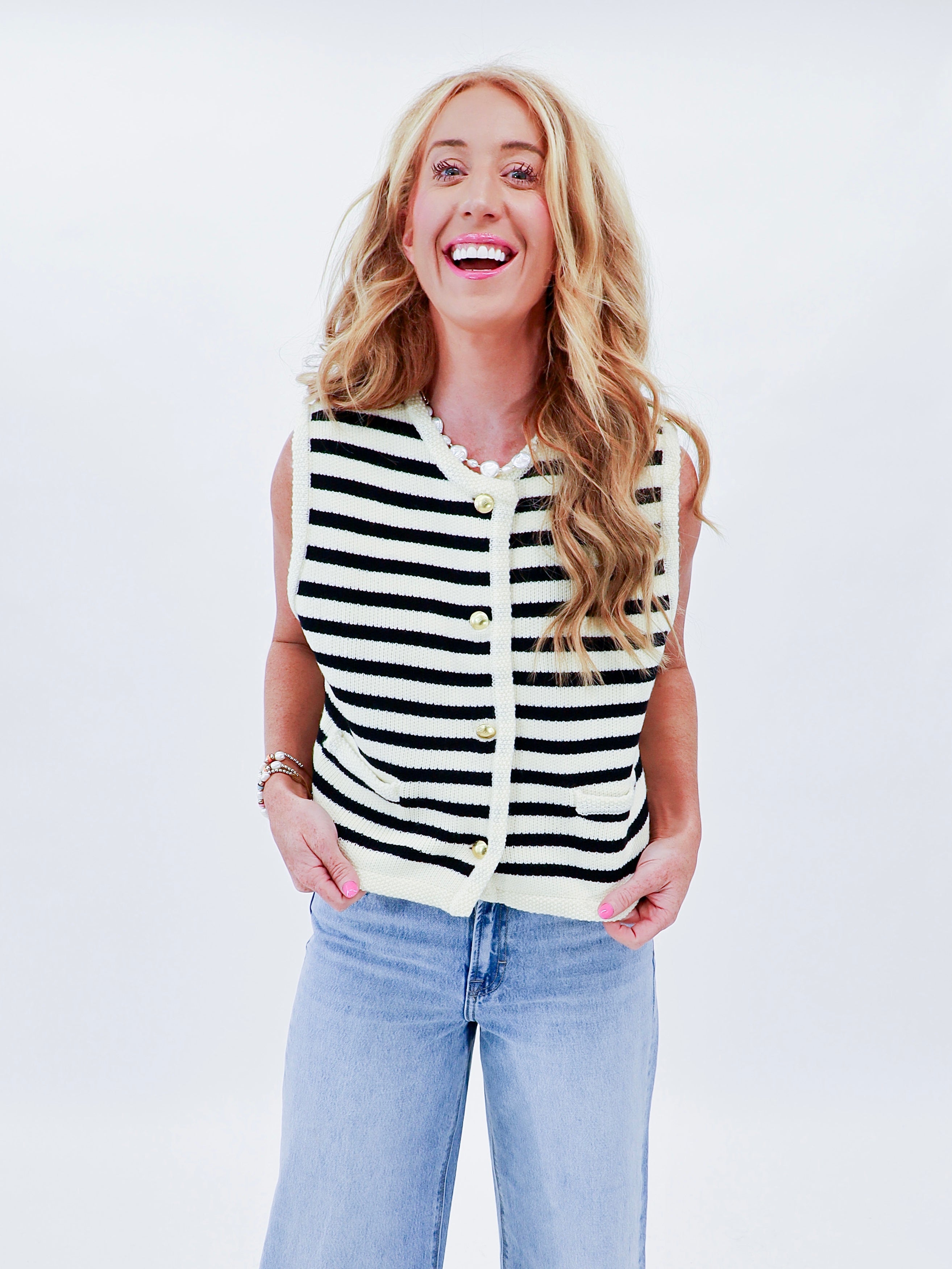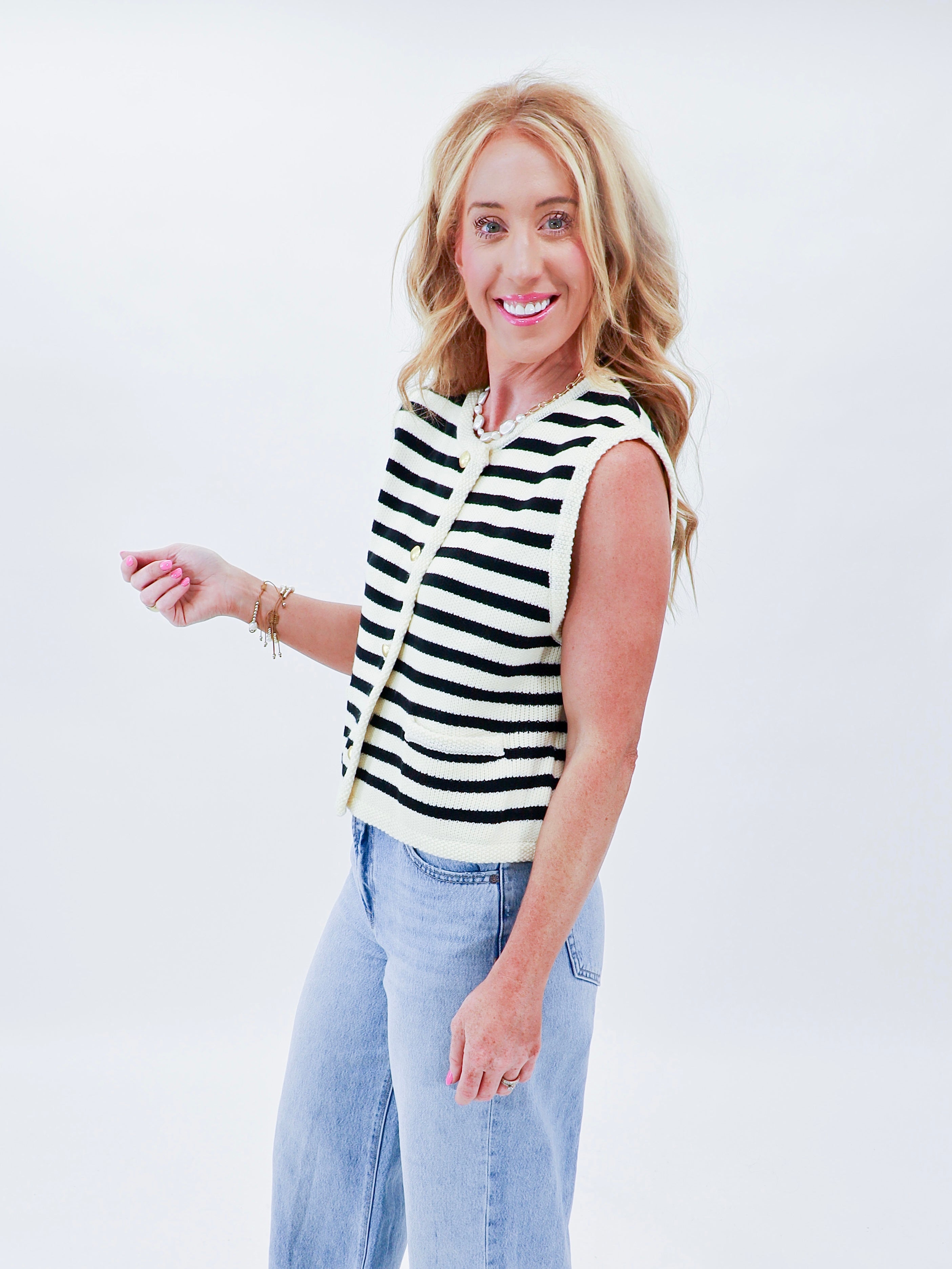 Introducing our Elle Striped Sweater Vest, loved by all! It's the ultimate piece for summer cookouts, romantic evenings, or simply catching up with friends over brunch. So cozy and plush, you'll never want to take it off!