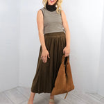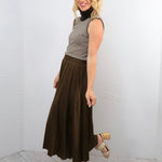 Hurry and grab this skirt before it’s gone! It’s perfect for fall transitions and will quickly become your go-to. Super easy to throw on, and since it’s a neutral, it pairs effortlessly with any basics you own. Dress it up with a denim button-down and heels for a casual yet chic date night look.