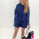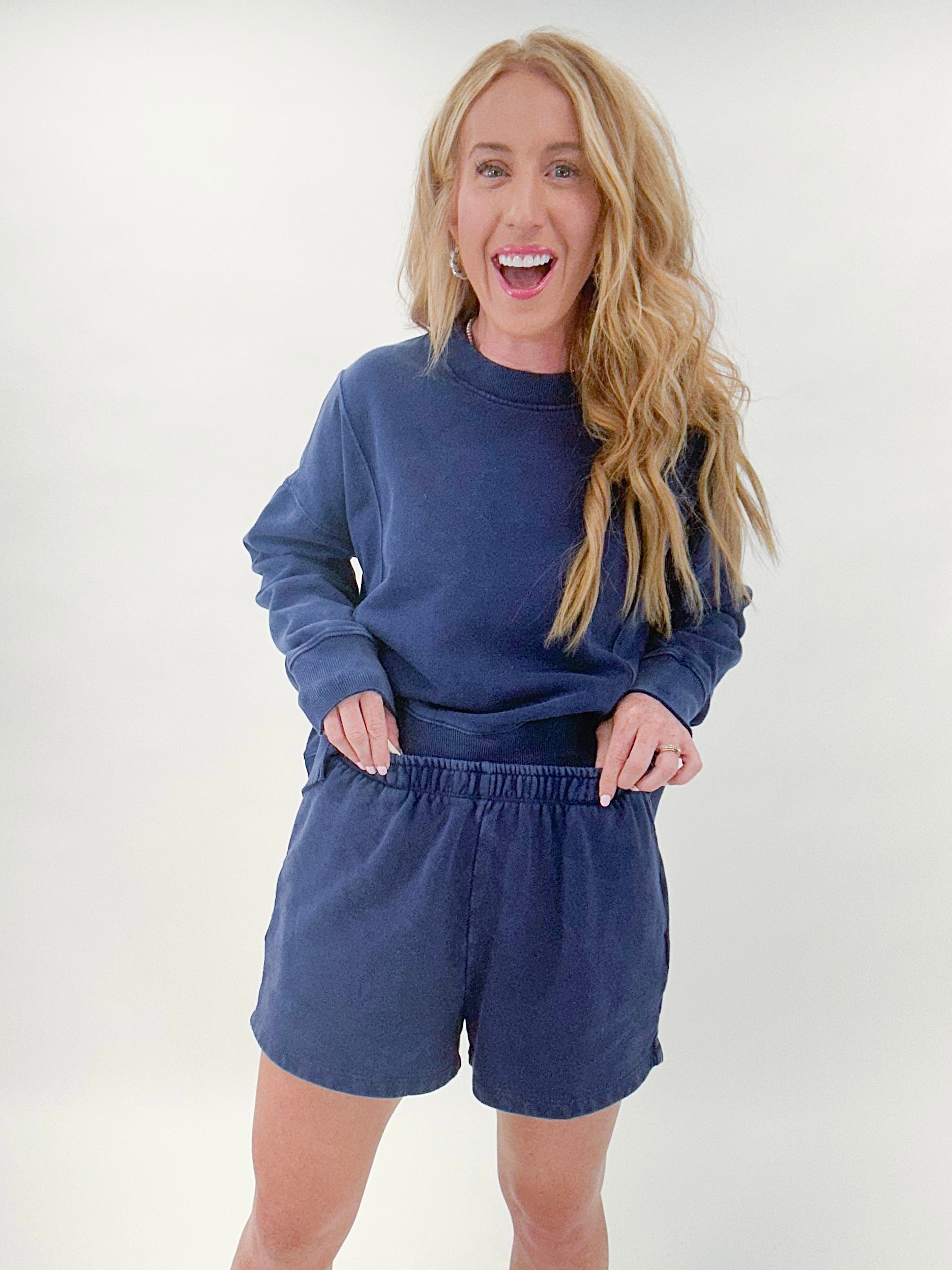 Our love language is loungewear, but these Noa's Navy Shorts take it to the next level in terms of color and comfort. They feel incredibly soft, so much so that you won't want to take them off. Match them with the coordinating sweater or a fun graphic for those warmer days, and you'll be both cozy and cute.