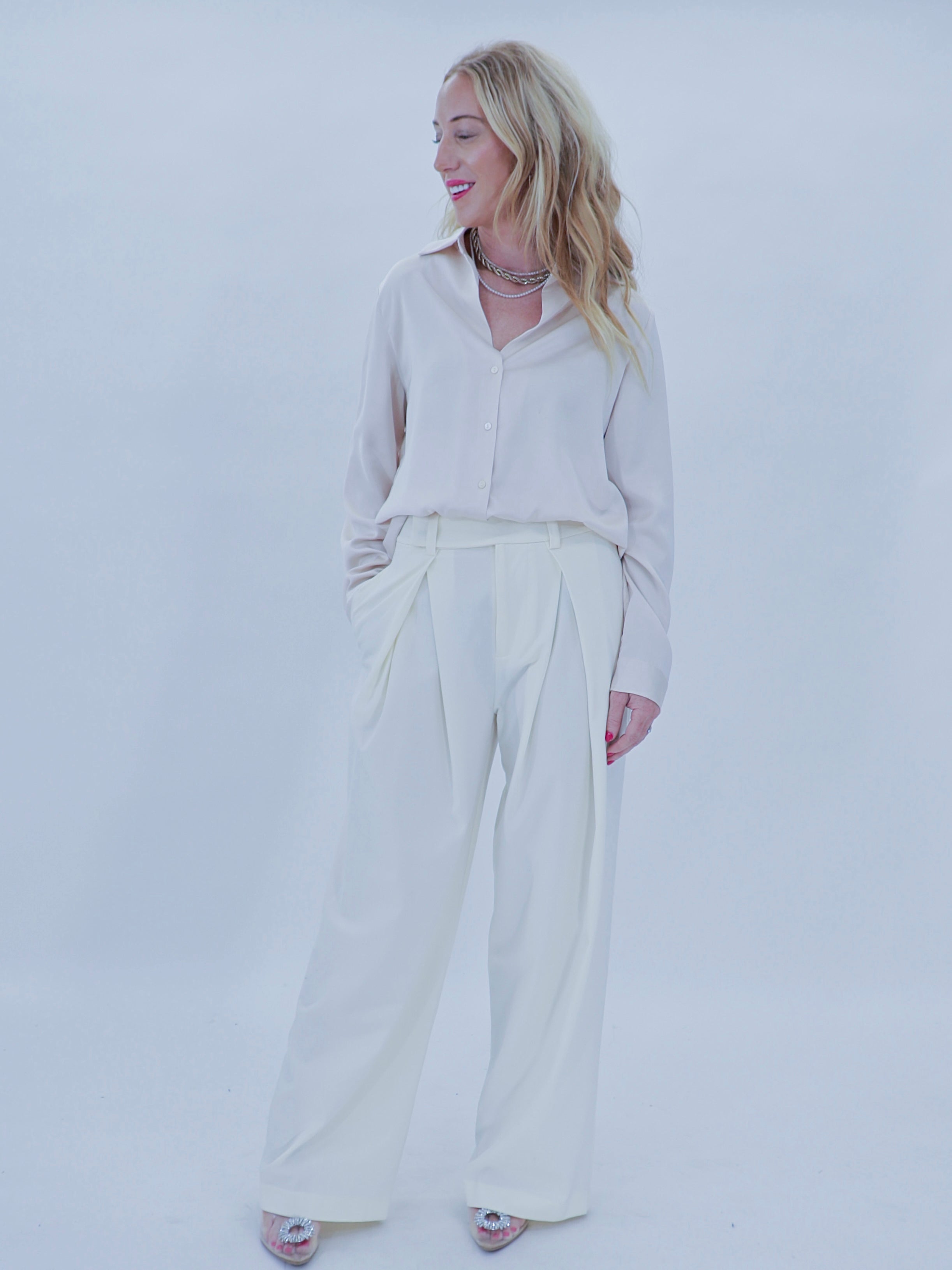 Experience comfort, versatility, and style with our Endless Pleated Trouser. Its flattering fit and timeless color make it a go-to choice for any occasion, from the office to holiday parties. Plus, it's designed to be worn year-round, providing a practical and chic addition to your wardrobe.