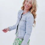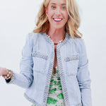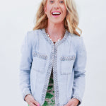 This denim jacket is the ultimate summer shade, with lightweight material and charming detail to boot. Wear it with denim shorts and a white tee, or throw it over a dress for your next rodeo!