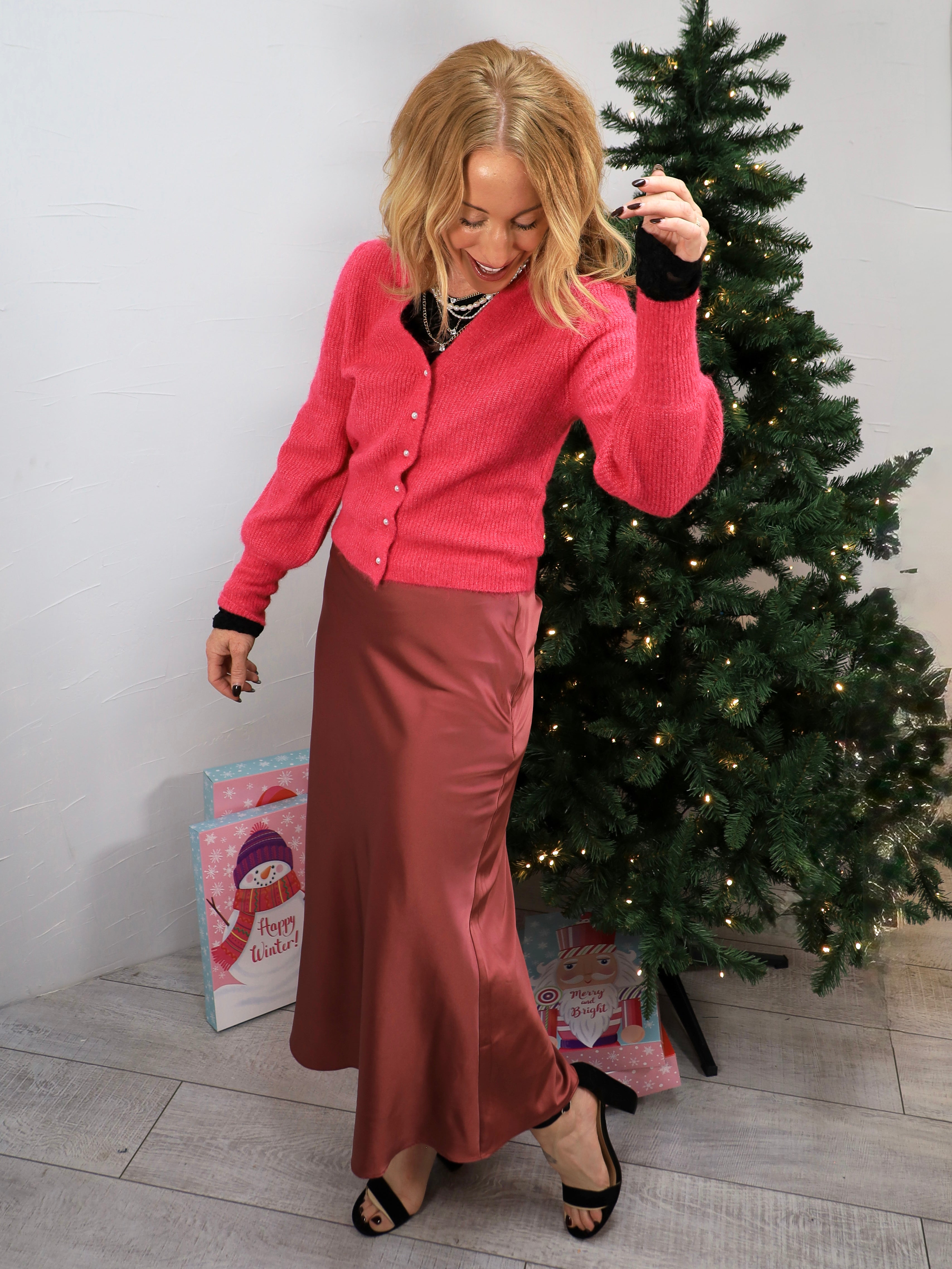 Soft, feminine, and effortlessly chic — this pearl-button cardigan adds the sweetest touch to any outfit. The cozy knit and balloon sleeves create the perfect blend of comfort and style, whether you’re dressing it up or keeping things casual.