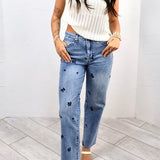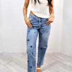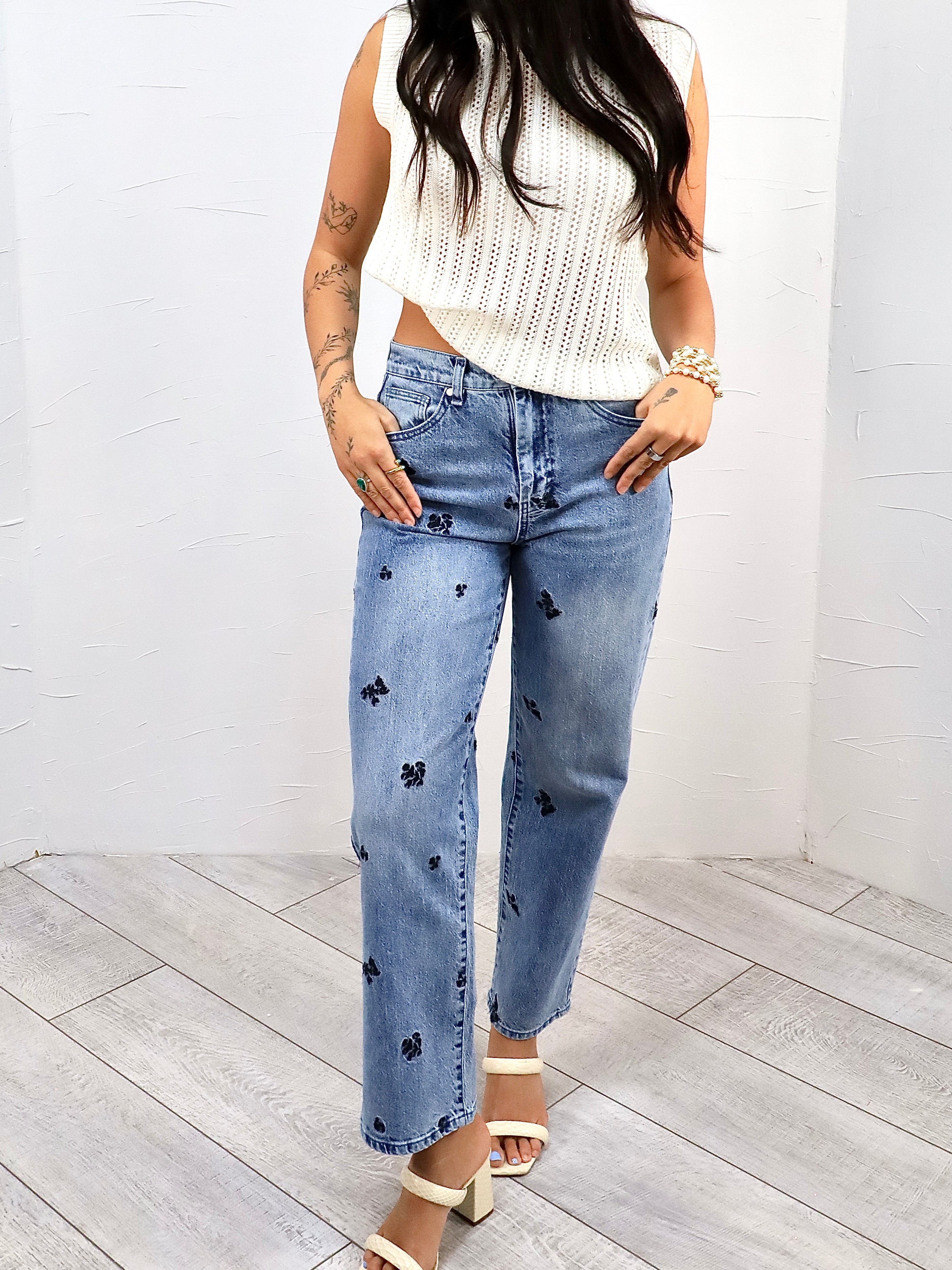 Uncover the newest floral denim pant, exuding charm and femininity. Trust us, this is an item worth adding to your cart because of its undeniable cuteness.