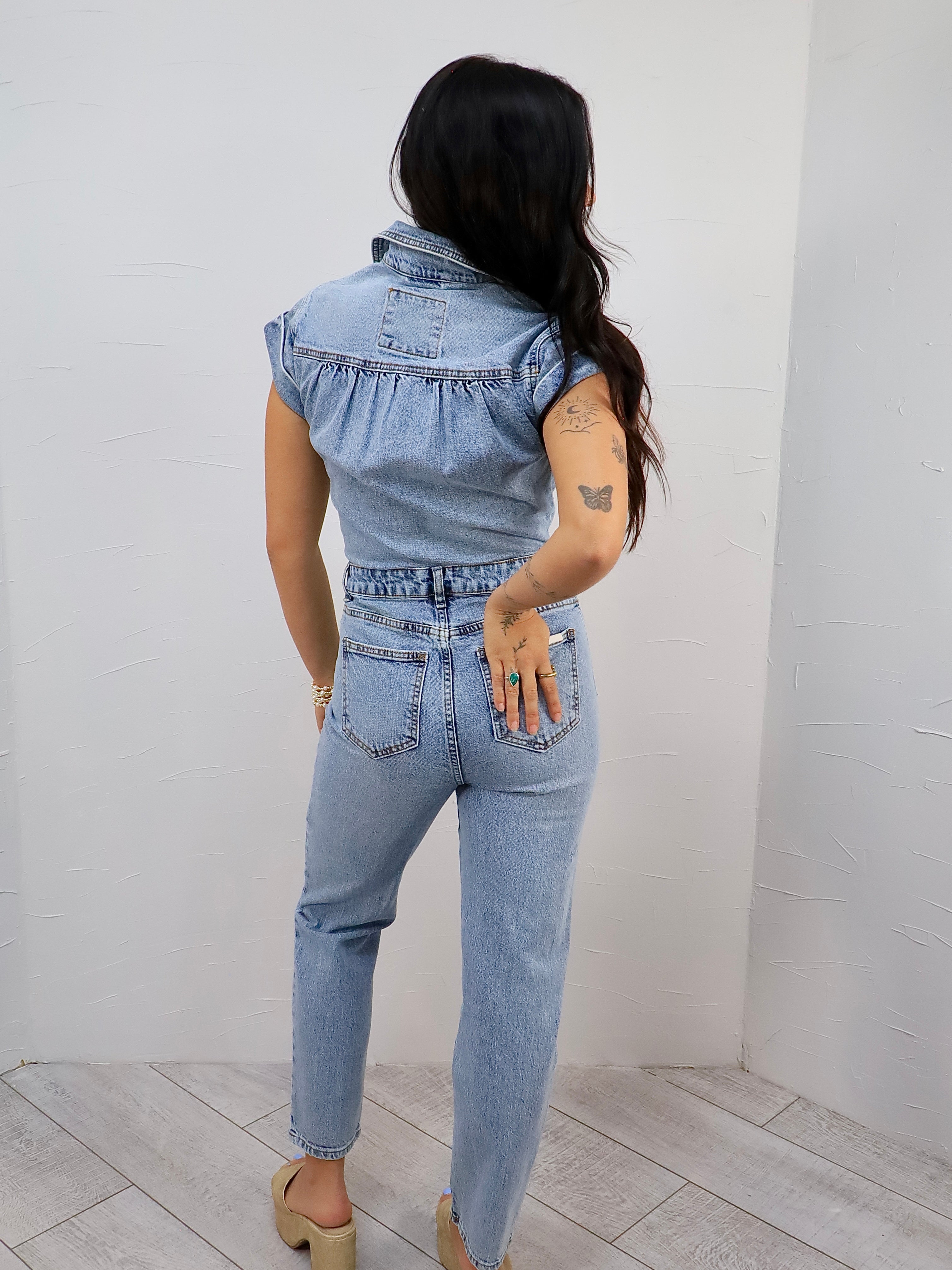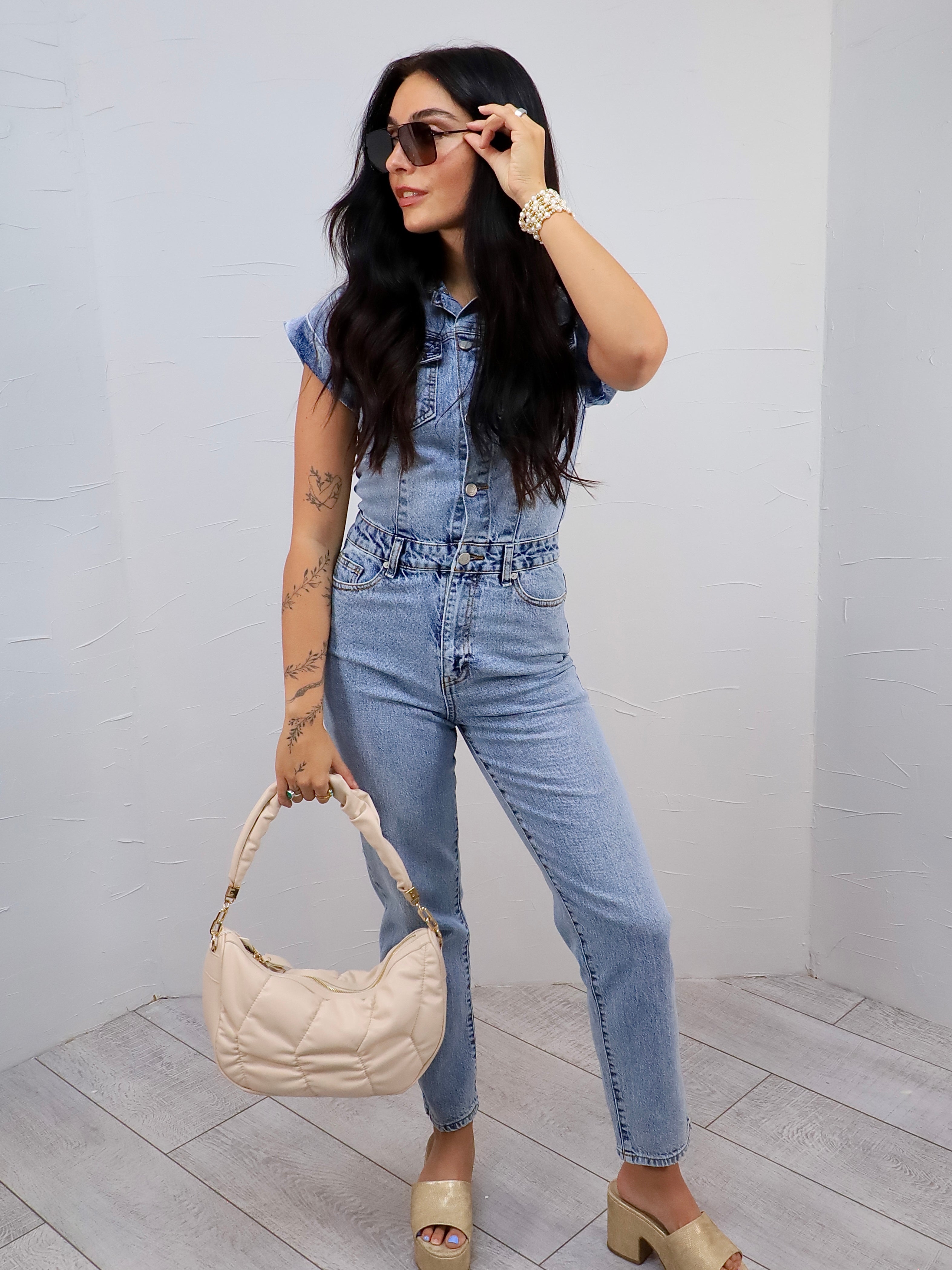 This jumpsuit is sure to become a staple in your wardrobe! It offers a perfect fit and fulfills all of your jumpsuit dreams. For a night out, try pairing it with cowgirl boots, a western belt, and a classic bandana. And for a more elegant look, dress it up with heels.