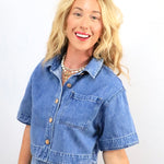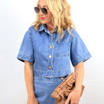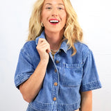 Get your hands on the new Tegan Denim Shacket this season! This unique piece combines the comfort of a shirt with the trendy style of a cropped denim jacket. You'll make a statement wherever you go in the Tegan Shacket!