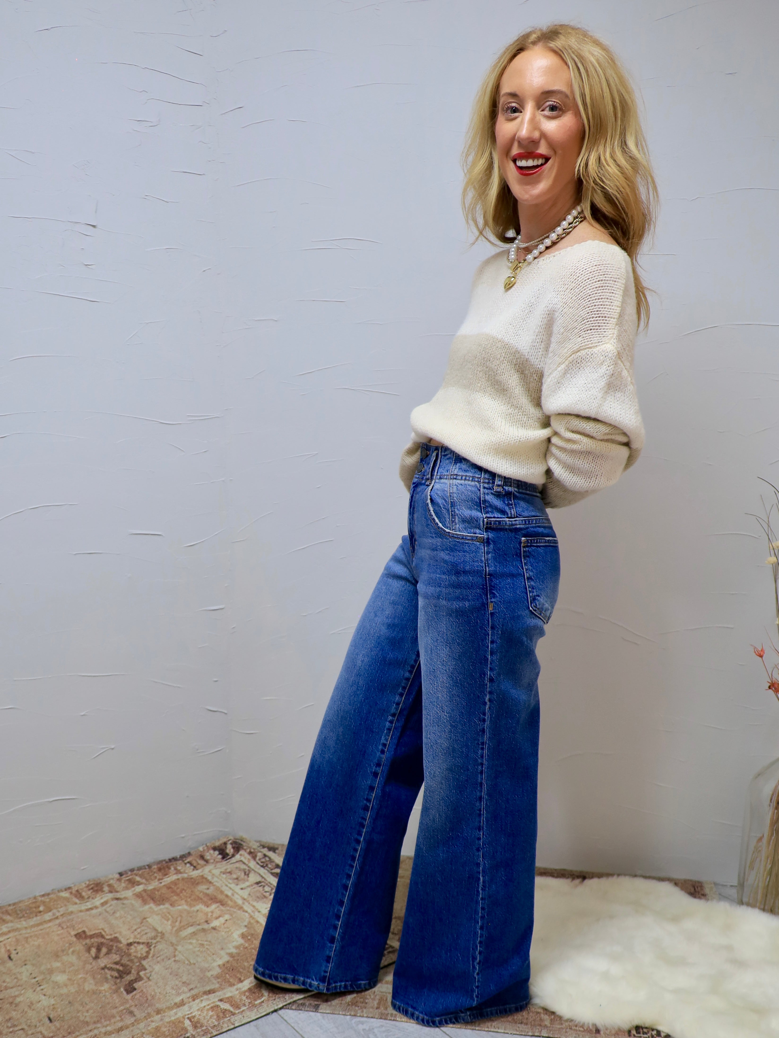 Experience ultimate fall style with the Easton Wide Leg Denim. Its versatile color ensures effortless dressing up or down, while guaranteeing both comfort and trendiness.