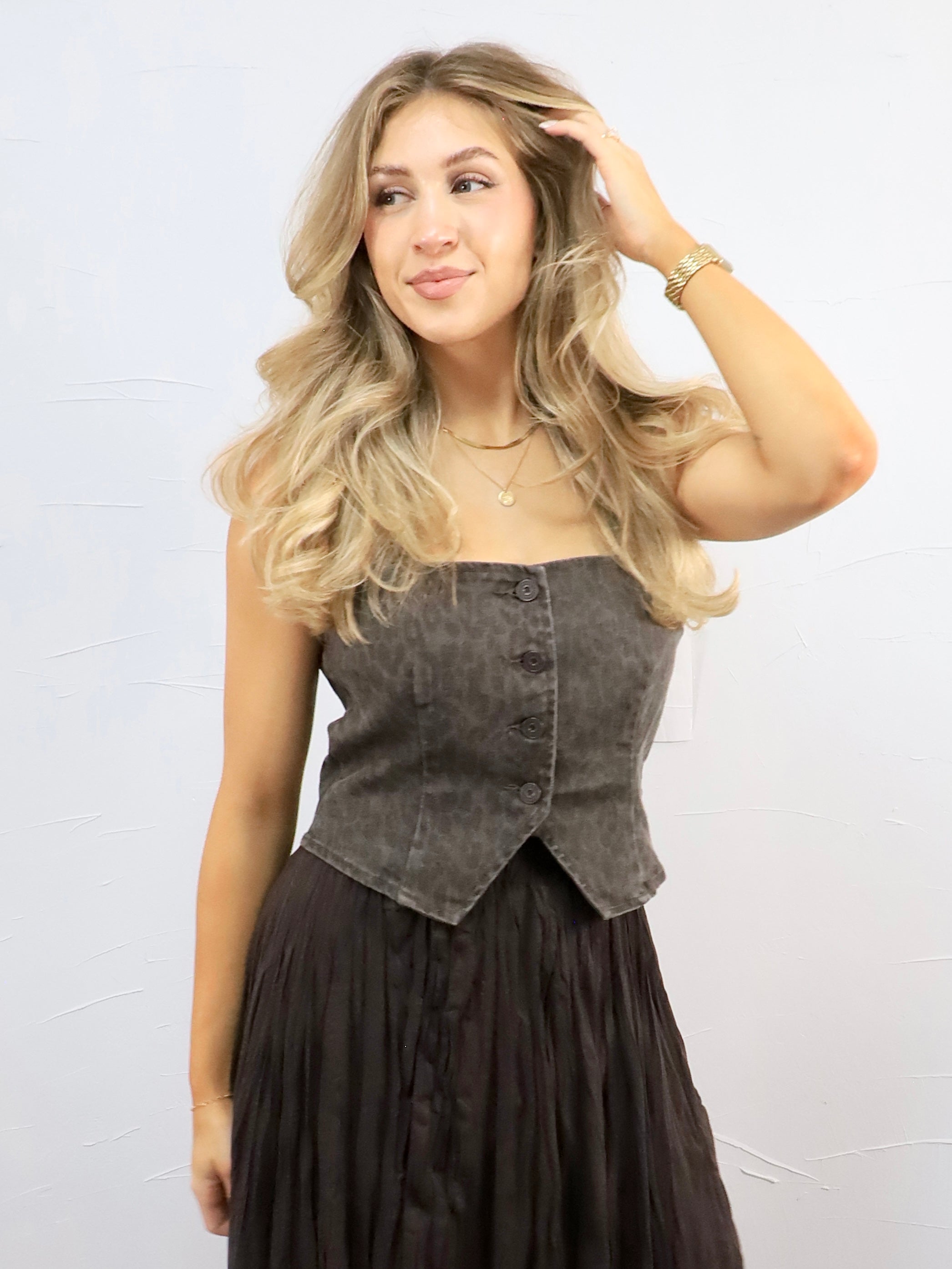 Get ready to swoon this fall with the Cheetah Vest! Style it with our fresh grey denim and heels for a flirty date night, or throw it over a long.