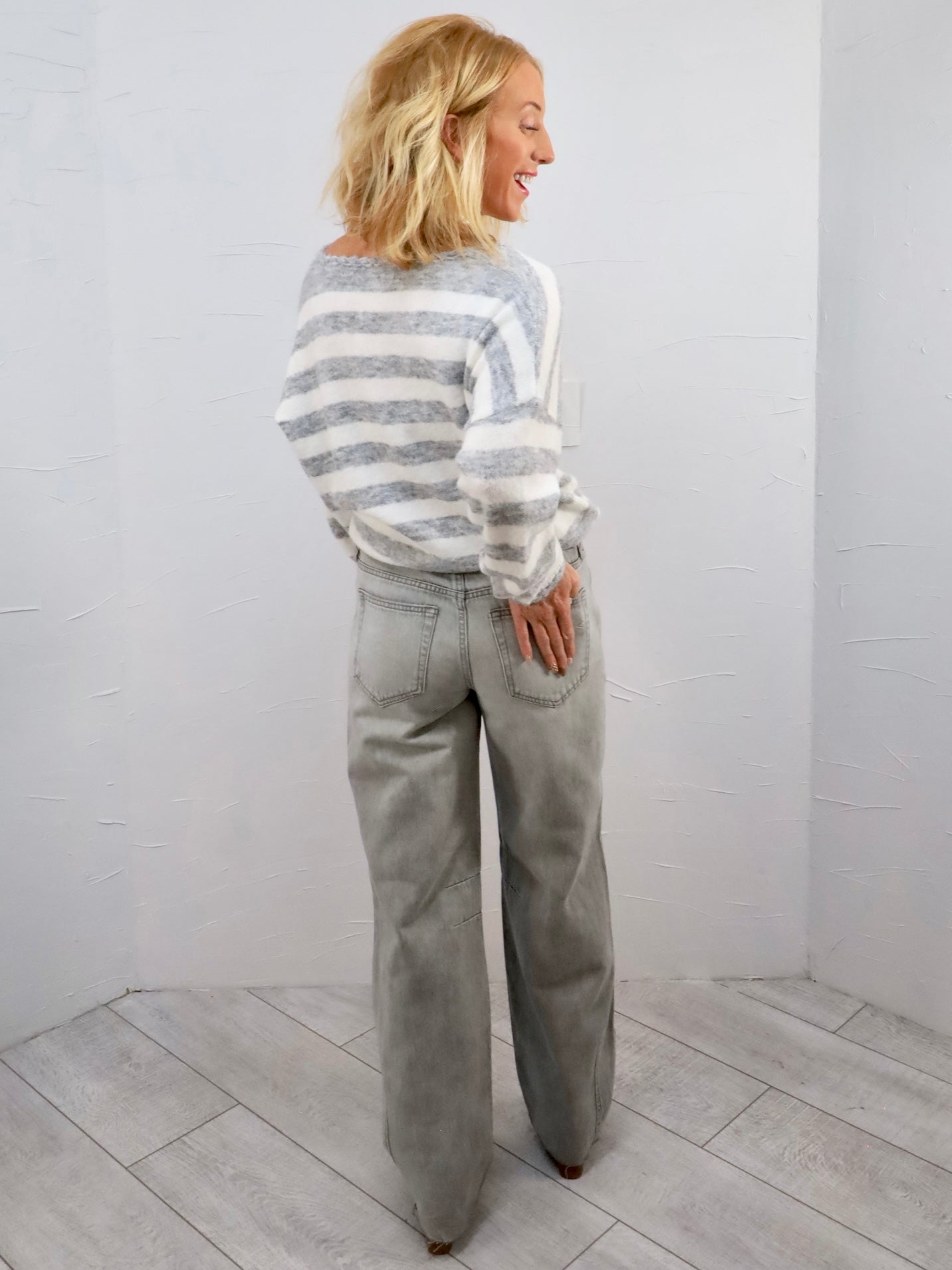 The ideal boyfriend-style denim can be found in the perfect color for the current season. Gray is a must-have for your wardrobe this year, so add it to your cart and keep your closet up-to-date for fall.