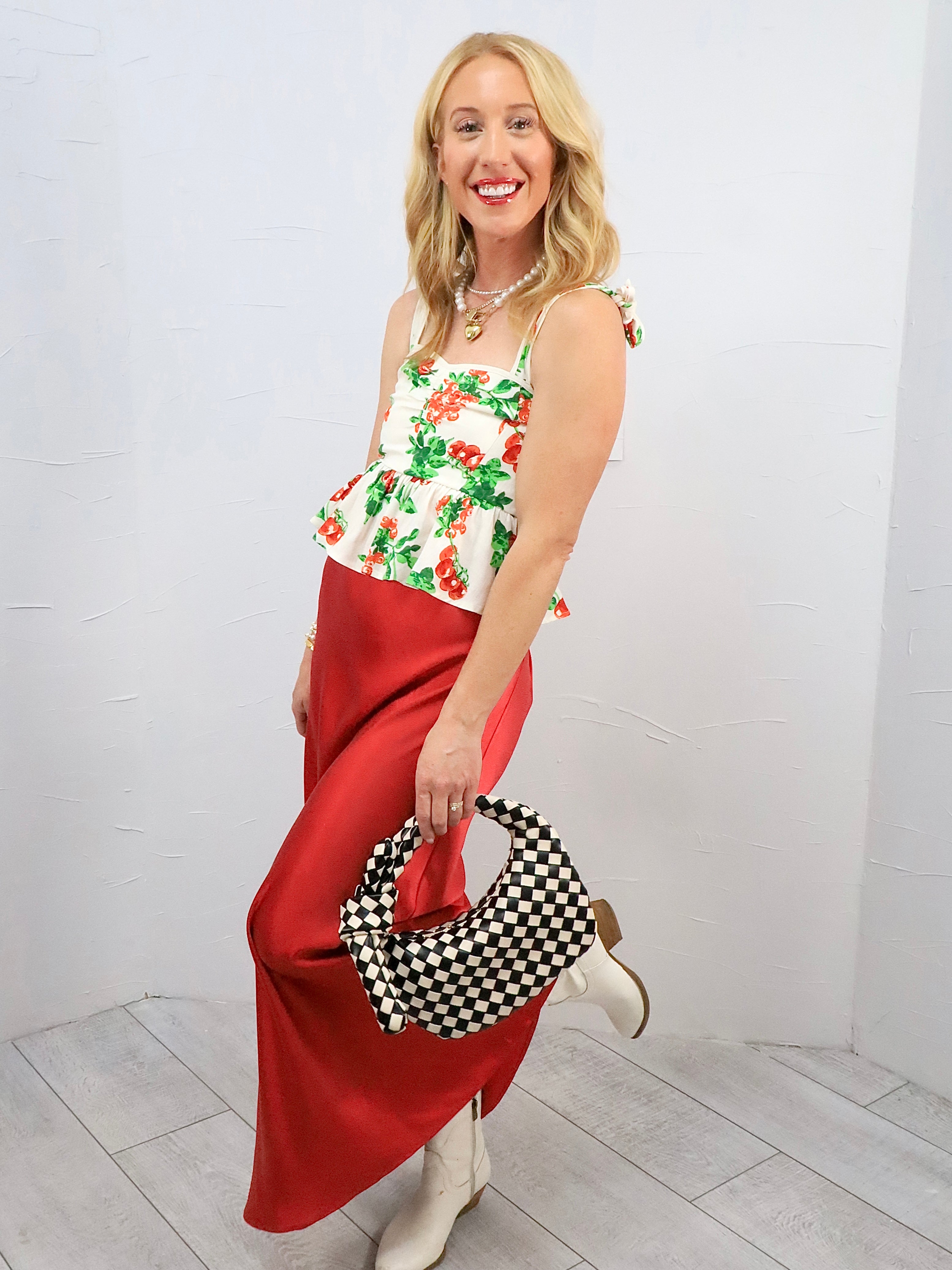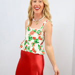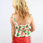 This dainty, feminine top features a charming cherry detail print, perfect for adding a sweet touch to your wardrobe. Style it with the matching shorts for a dreamy picnic look, or pair it with denim for an effortlessly chic, everyday outfit.