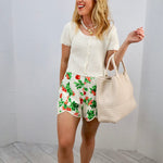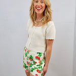 These dainty, feminine shorts feature a playful cherry detail print that adds a touch of whimsy. Pair them with the matching set for a picnic in the park, or with a red sweater and cute tennis shoes for an effortlessly elevated, on-the-go look.