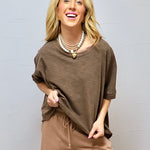 Our latest obsession has arrived in store! We're loving the coziness, wearability, and neutral tone. Match it with the lounge set for ultimate comfort and casual style, or pair it with denim and our She's A 10 Tennis Shoe for a trendy upgrade to your tee collection.