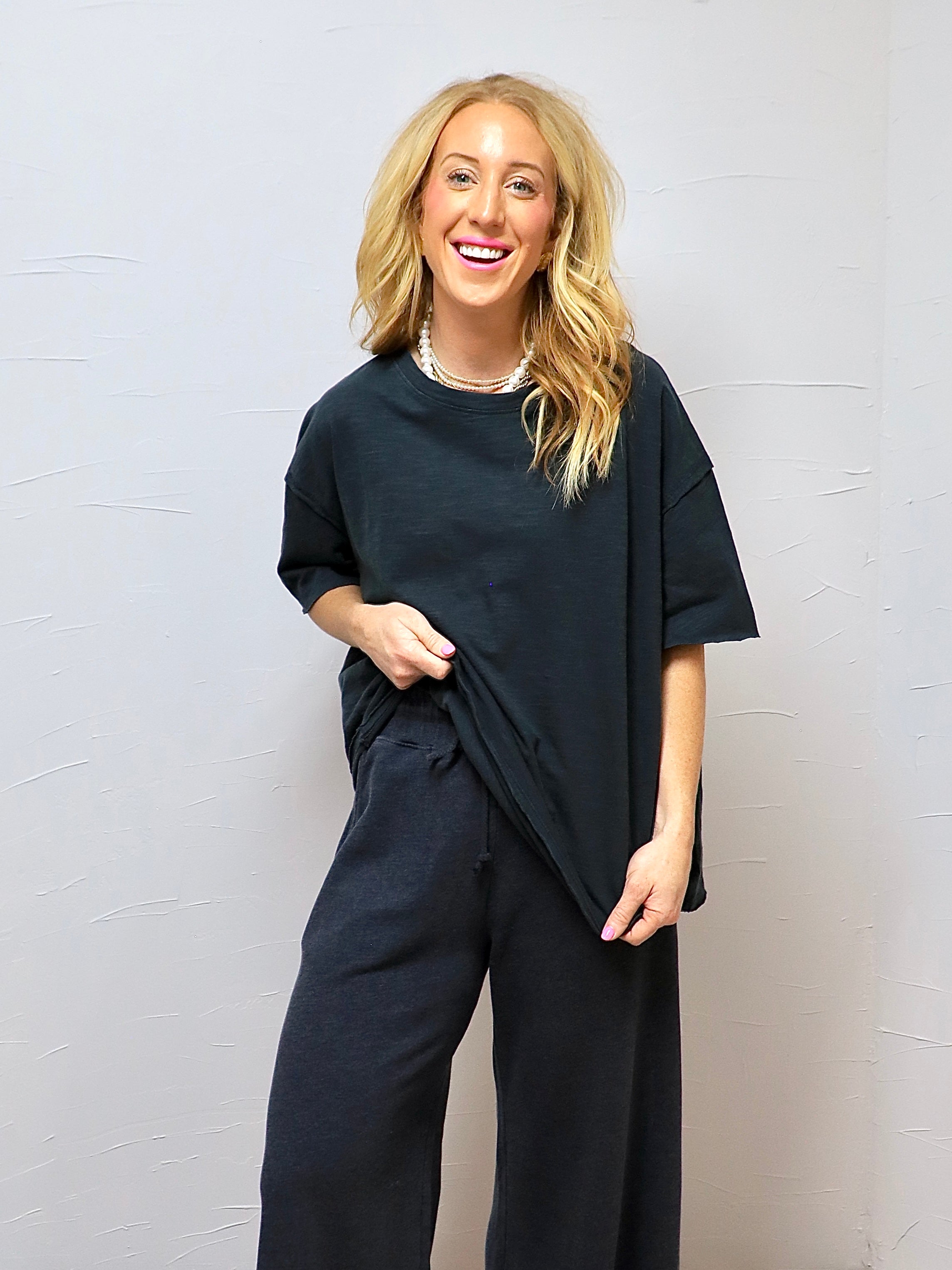 Our latest obsession has arrived in store! We're loving the coziness, wearability, and neutral tone. Match it with the lounge set for ultimate comfort and casual style, or pair it with denim and our She's A 10 Tennis Shoe for a trendy upgrade to your tee collection.