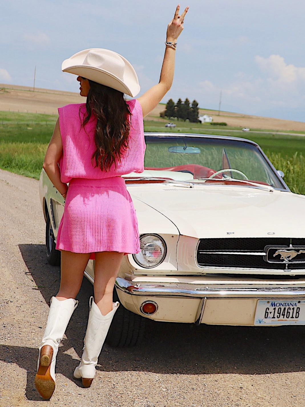 The ultimate knit skirt, just in time for summer, pair with a basic tank or its matching top from QOS.
