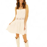 Our Sommer Mini Lace Dress is the perfect summer dress for all your events you have planned. Pair with your favorite cowgirl boots and throw a denim jacket over your shoulders and be ready for all your country music concerts.