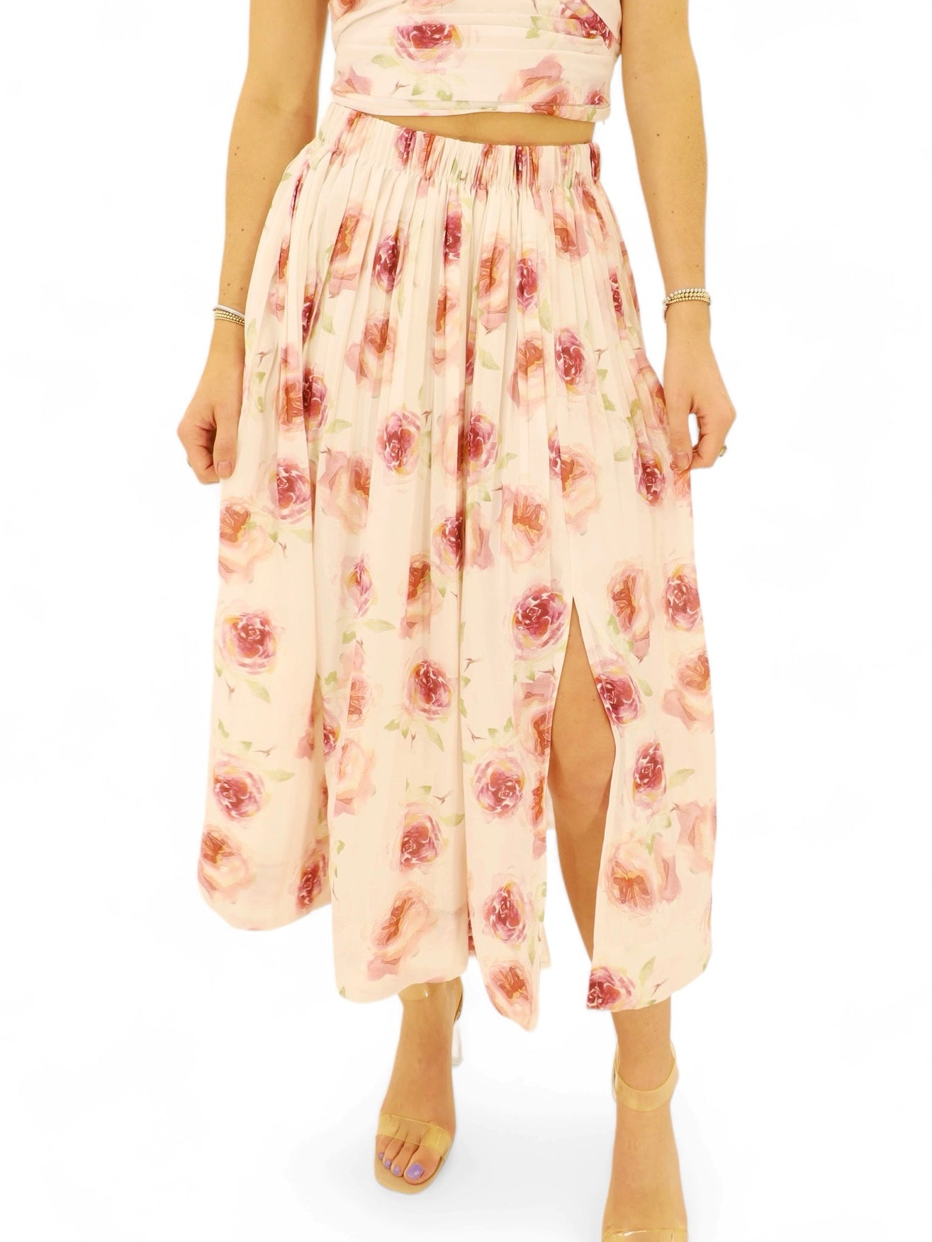 Our La Jolla Pleated Floral Skirt is so dreamy, we are envisioning date night, wedding guest or even dress down to wear to the office for a flirty and fun look.