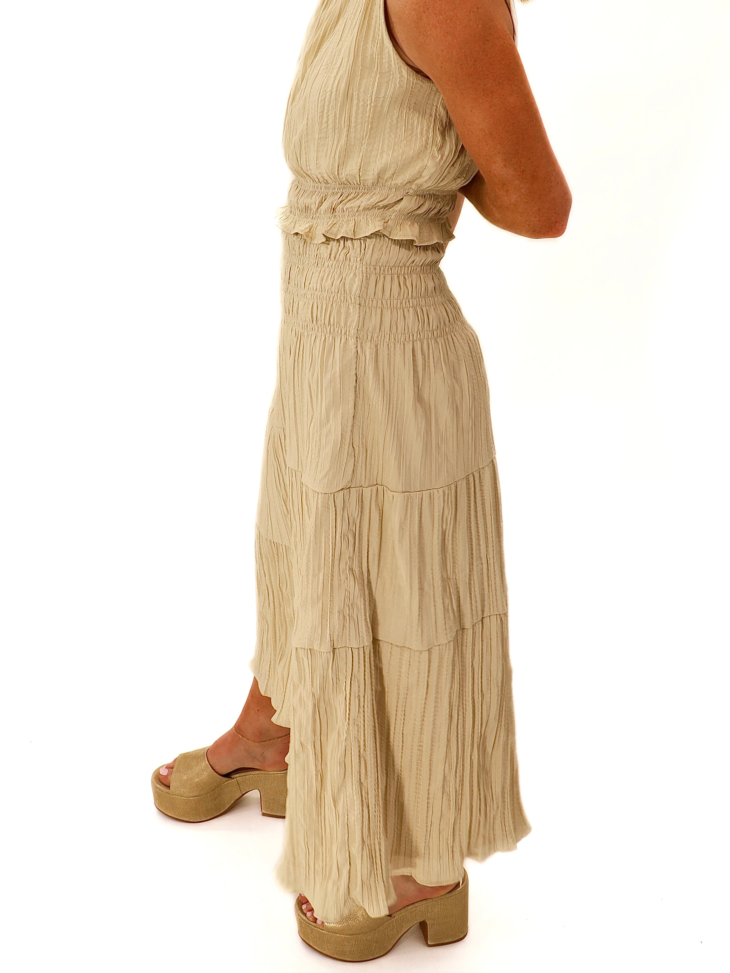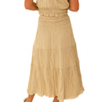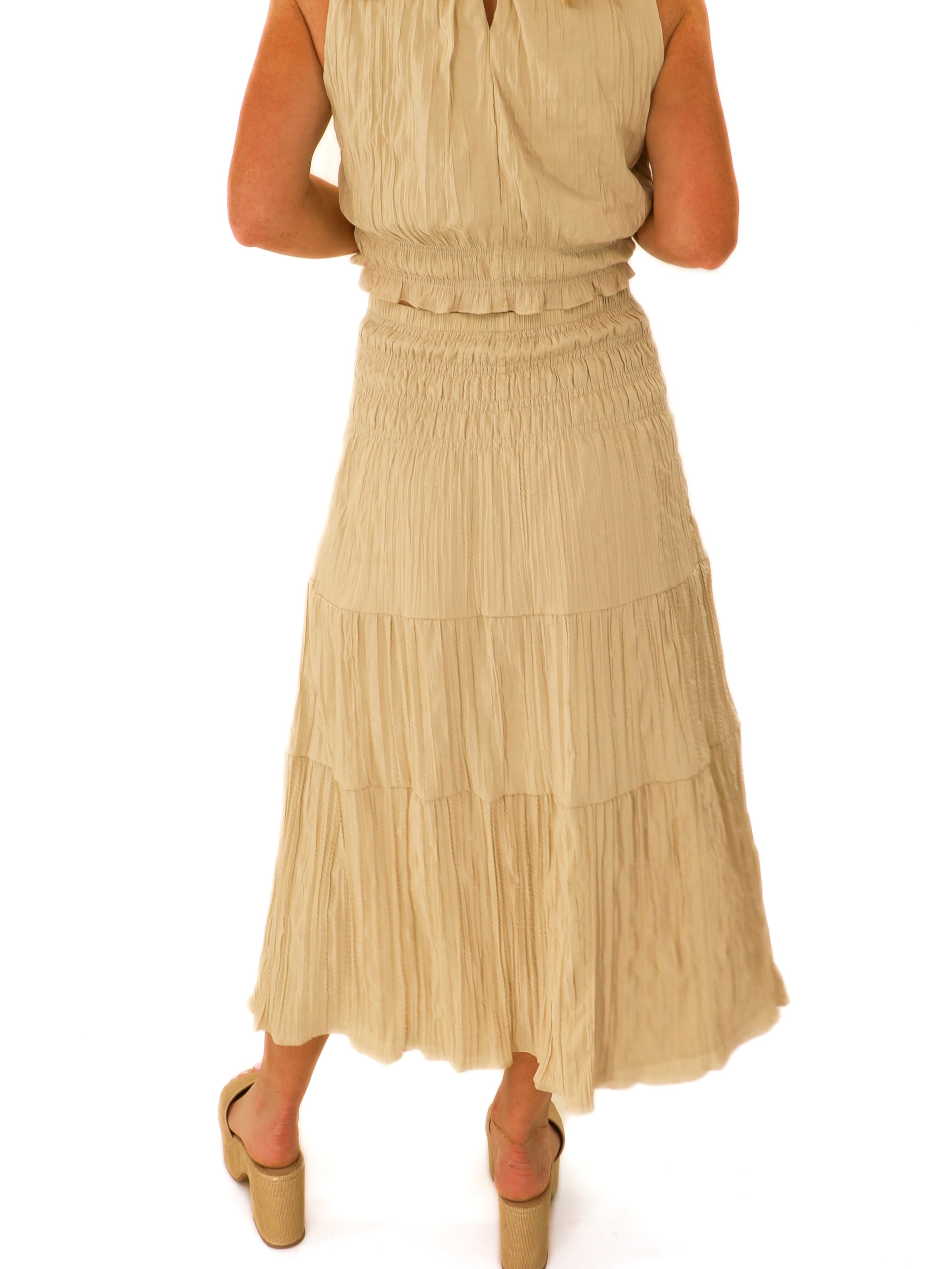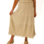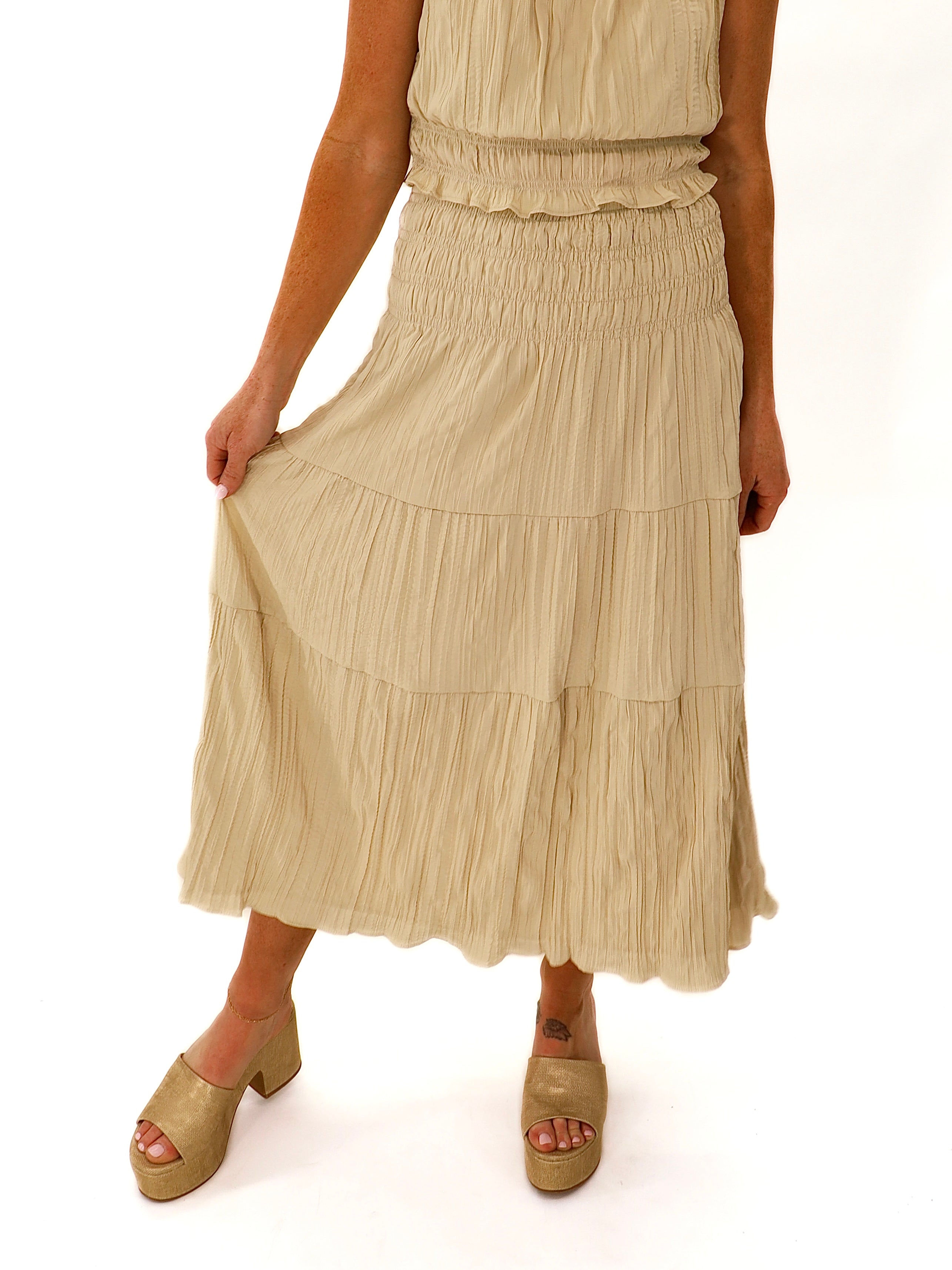 Our Hazel Gathered Skirt is the ultimate comfortable midi length skirt, the texture and color are perfect for every and any day!