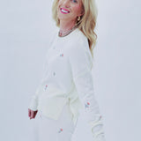 The perfect addition to your holiday wardrobe, this top is sure to be a hit. Not only can you pair with the matching lounge bottom but you could dress up with your favorite pair of denim for brunch with your girls.