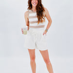 The perfect and of course most comfortable white shorts. Dress up with one of new nautical tops for a lunch date or dress down with a white top and slides for a road trip to the lake.