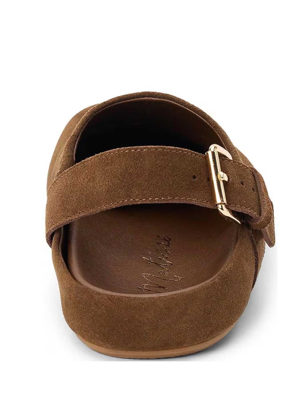Easy days call for the effortless style of these suede mules, finished with an adjustable buckle for a hint of detail and versatility. Whether paired with jeans or a flowy dress, this simple silhouette brings comfort and style throughout the cooler months.