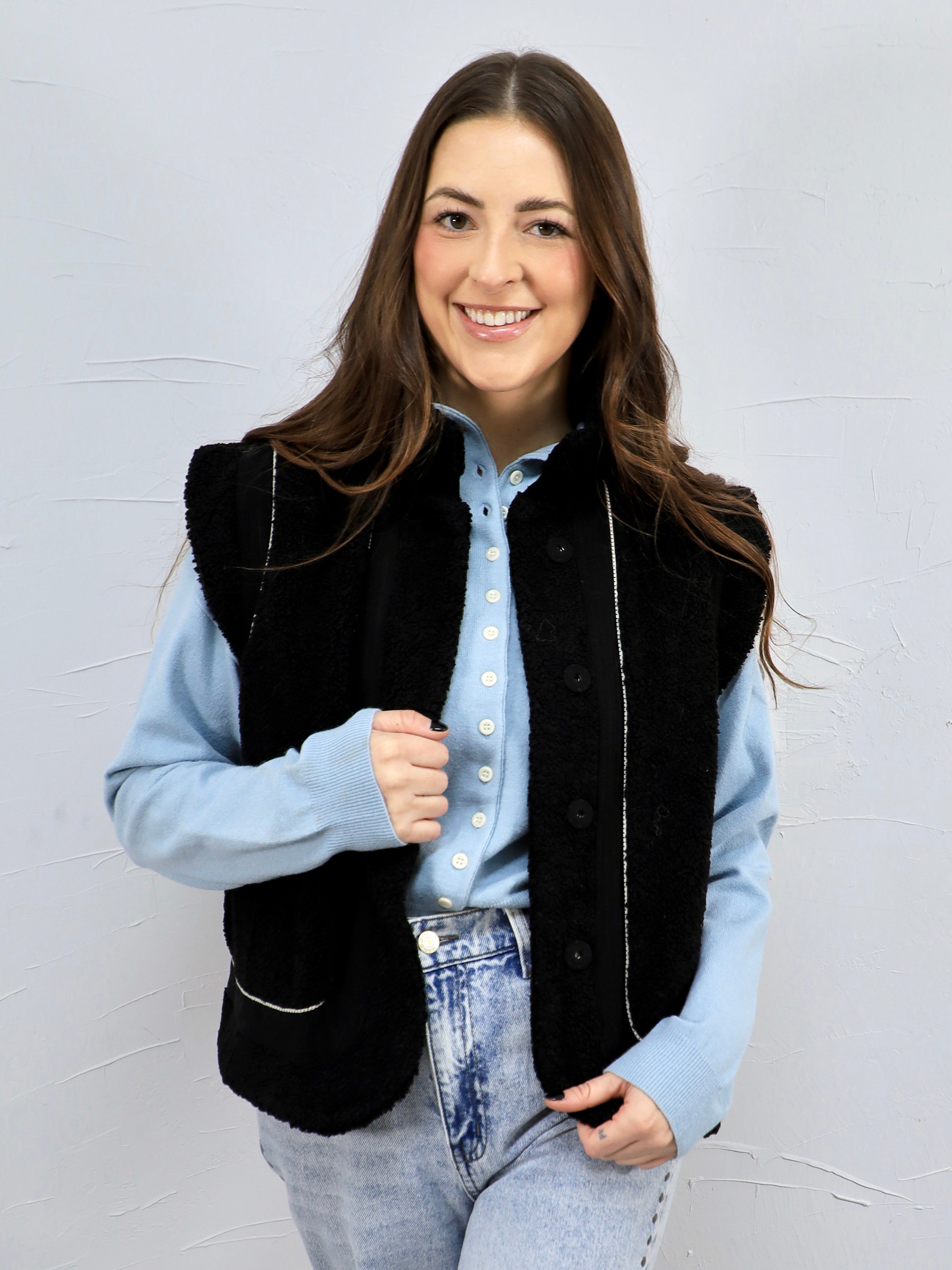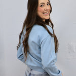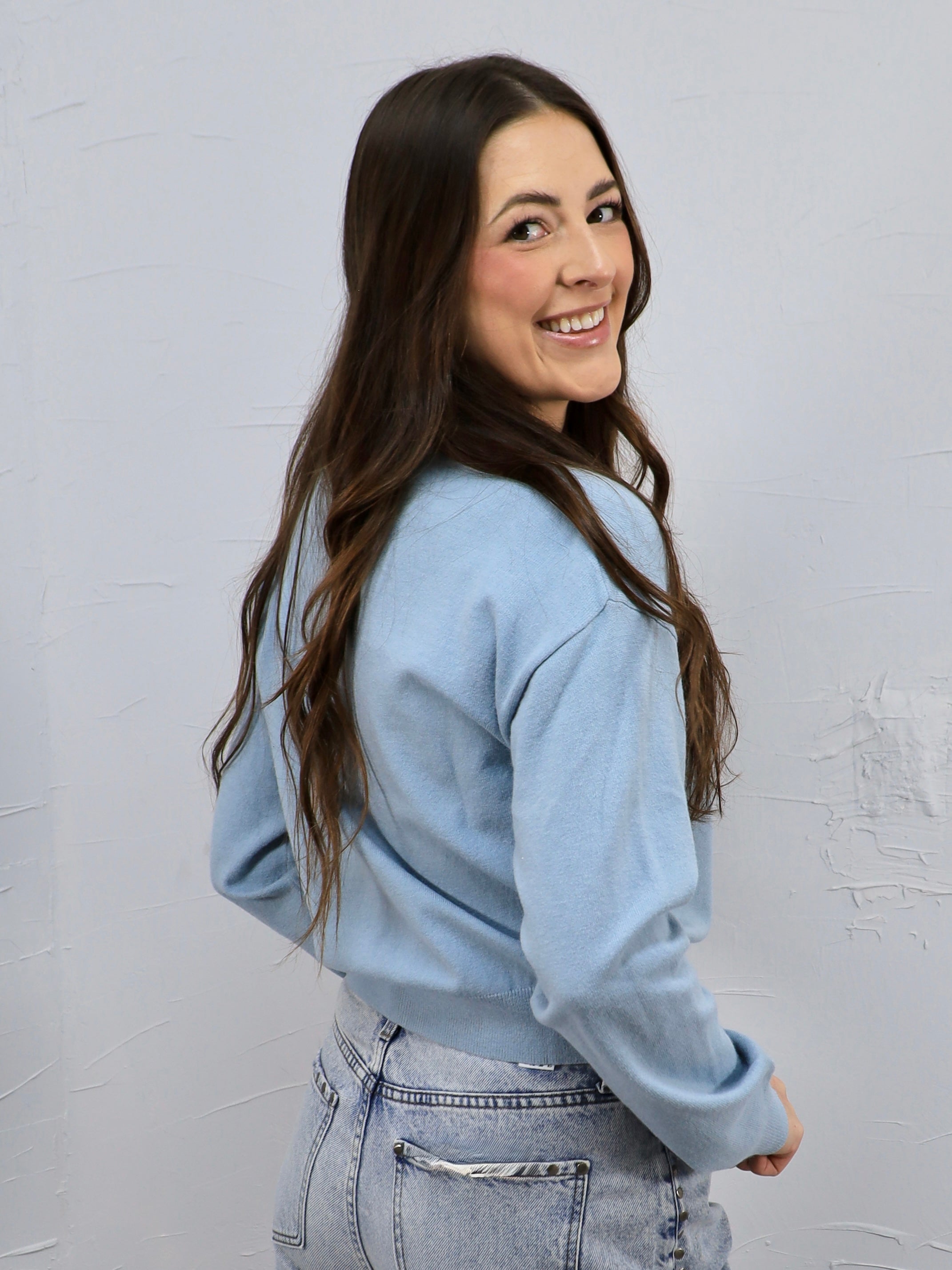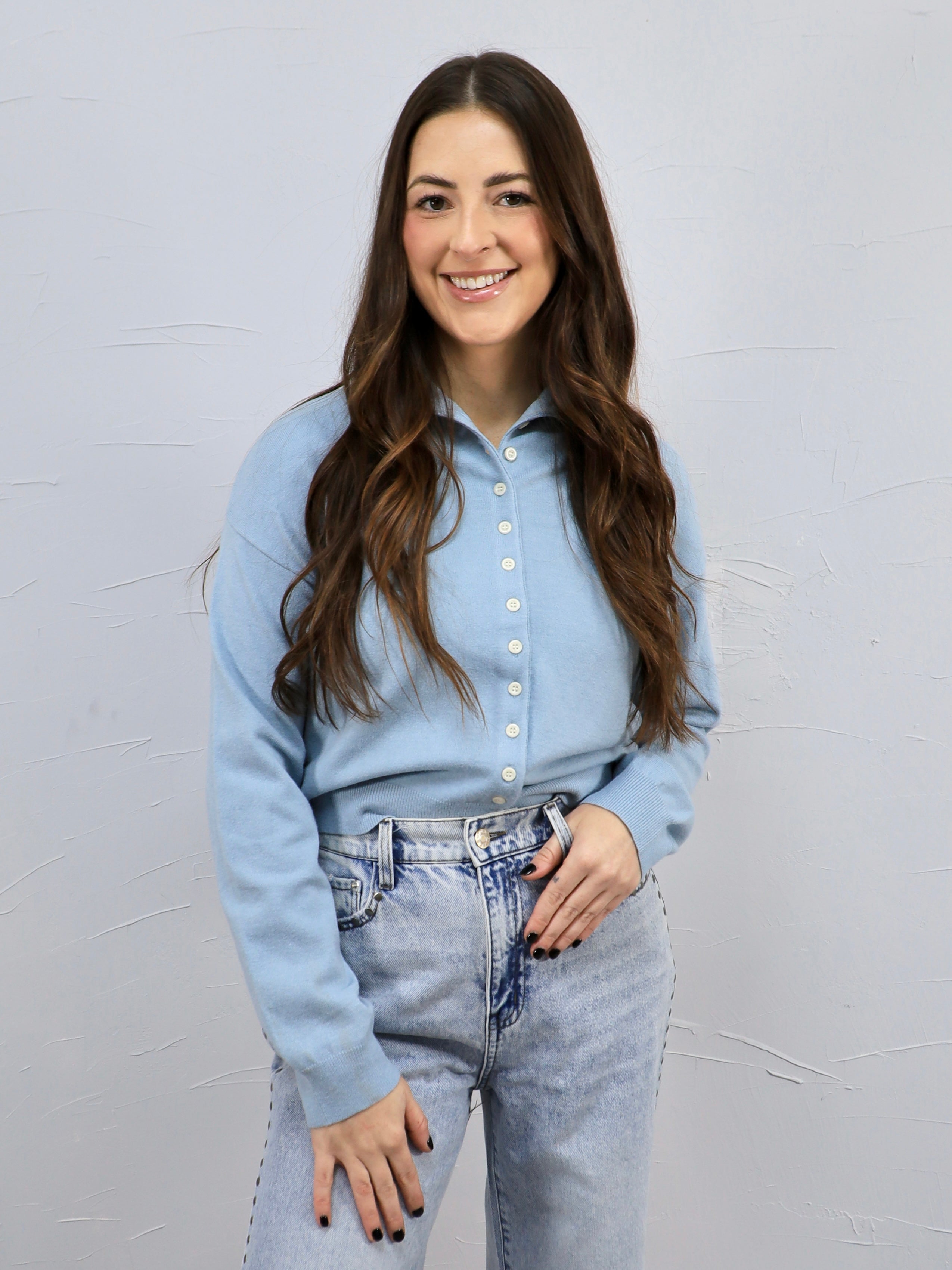 This soft blue cardigan is a timeless staple that’s easy, polished, and endlessly wearable. It’s perfect for everyday styling—whether you’re heading to the office, running errands, or grabbing coffee with friends.