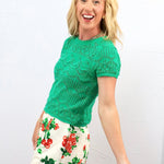 Transform your casual outings with our A Moment In Green Top! This adorably feminine piece is your new grab-and-dash bestie. Rock it with white denim and slides for giggle-filled brunches, or match it with our floral denim skirt and cowgirl boots for flirty happy hour dates. One top, endless possibilities for your fun-loving wardrobe!