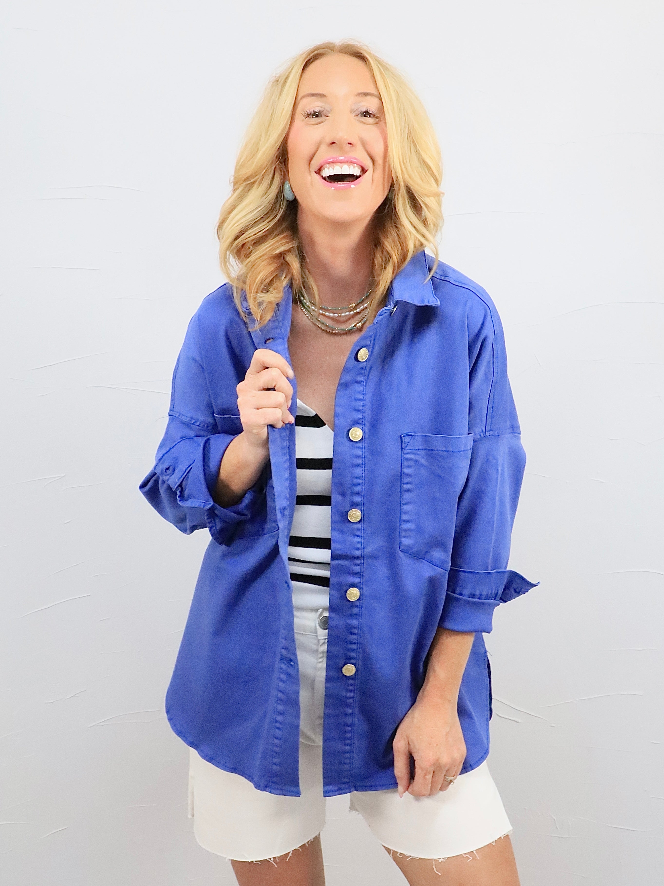 Our brand-new oversized shirt jacket is the perfect grab-and-go piece for those nippy Montana mornings! When you're dashing out the door but still want to look fabulous, this beauty has your back. With its playful lived-in aesthetic and gorgeous color, the Living In Vintage Denim Jacket adds that special touch of elevation to any outfit while keeping you cozy. Stay warm and stylish without even trying!