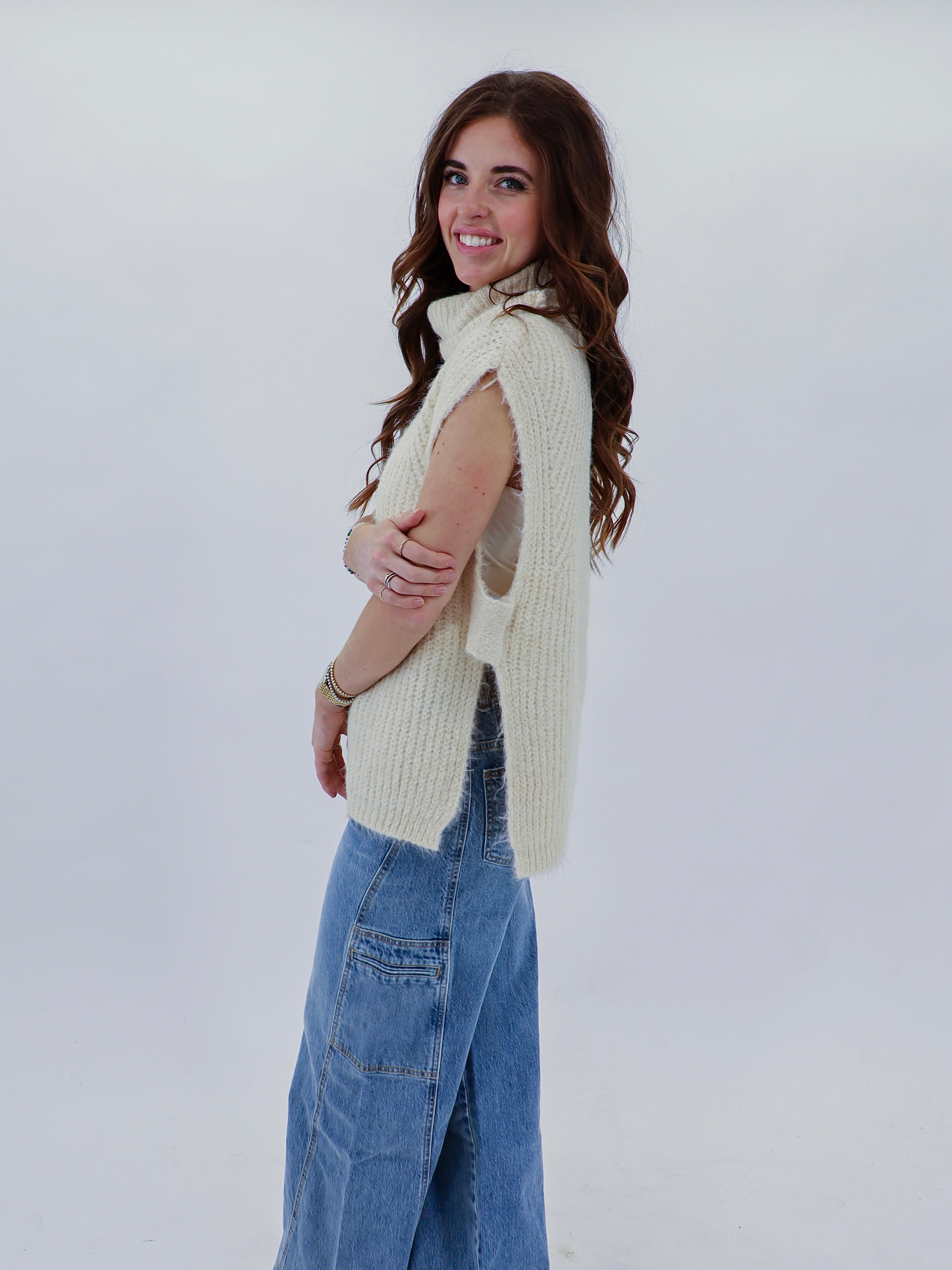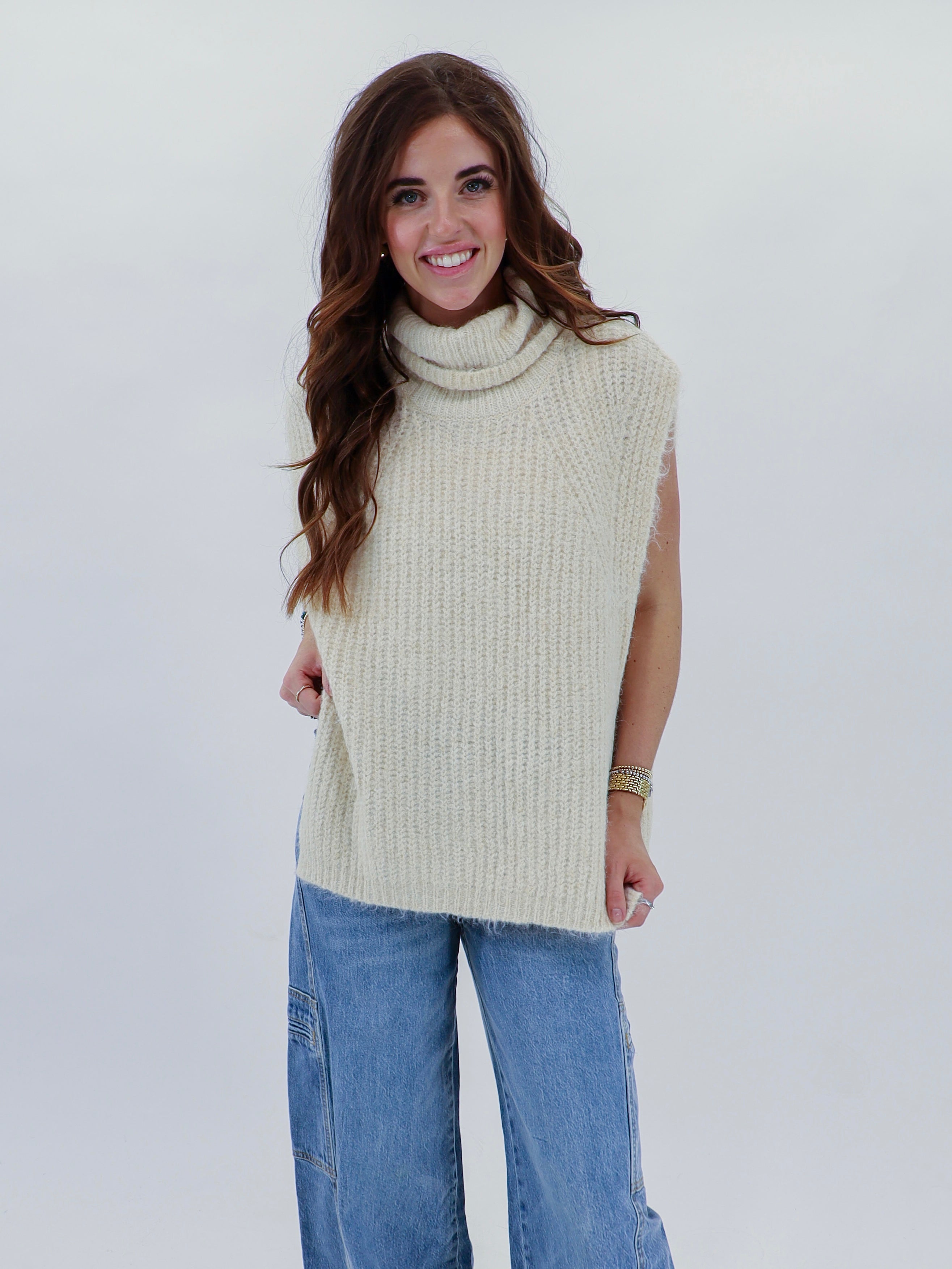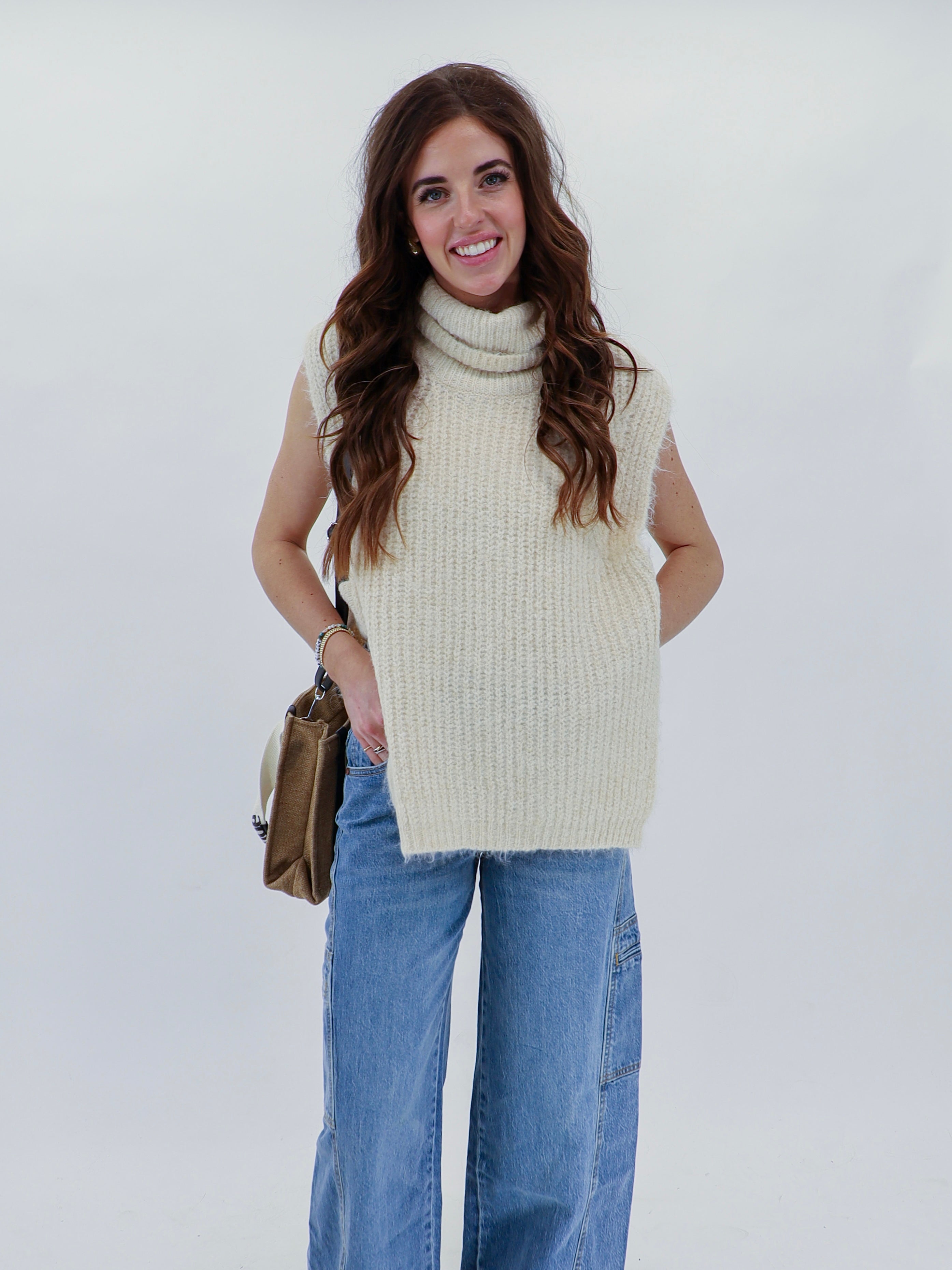 We're totally drooling over this latest sleeveless turtleneck! Not only is she super cozy and plush, but her neutral color means she can match anything in your wardrobe for the perfect look every day