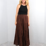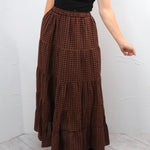 Easy volume, soft texture. The Paloma Skirt is a tiered gingham maxi with a full, floaty silhouette and subtle gathered seams throughout. Designed with an elastic waistband and finished with a delicate bow detail, it’s fully lined for comfort and ease. Pair it with the Bleu Top for a coordinated look that feels pulled together without the fuss.