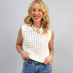 This white crocheted tank is the perfect mix of sweet and effortless, with just enough texture to elevate and look. Layer it up or wear it solo- she's ready for sunshine and compliments.
