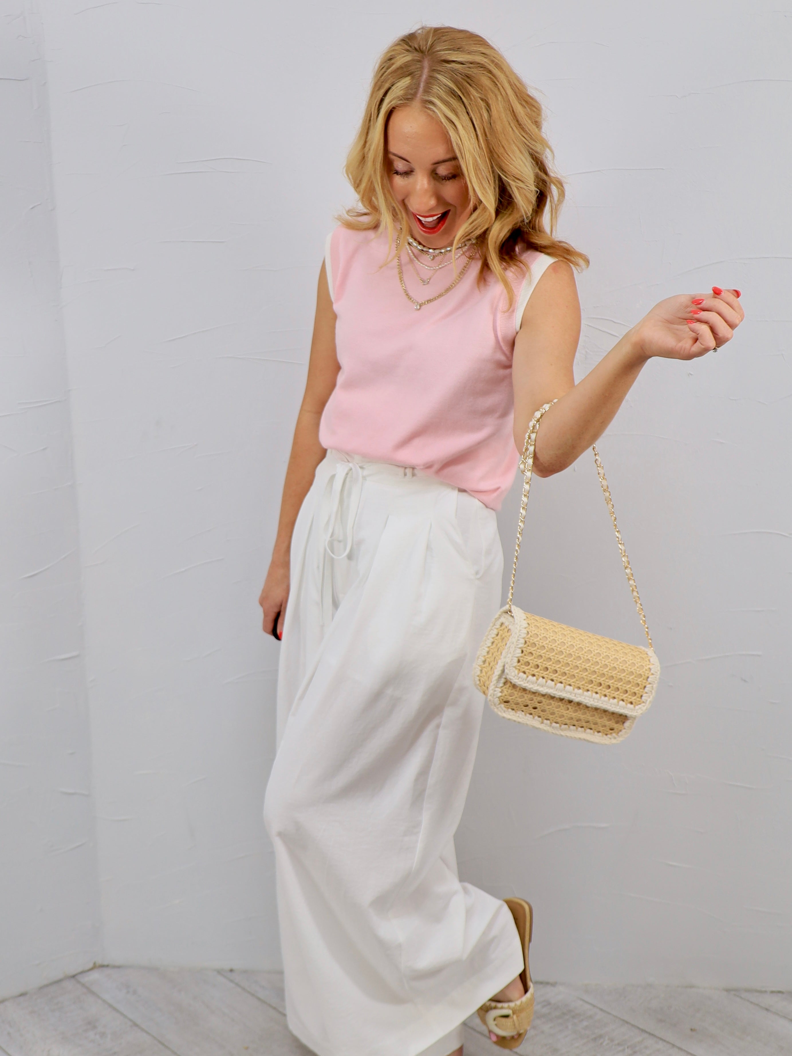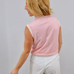 Meet the elevated basic your closet has been waiting for. This soft blue knit top features a sleek sleeveless silhouette with subtle contrast trim that adds the perfect touch of detail while still keeping things effortlessly classic.