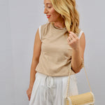 Meet the elevated basic your closet has been waiting for. This soft blue knit top features a sleek sleeveless silhouette with subtle contrast trim that adds the perfect touch of detail while still keeping things effortlessly classic.