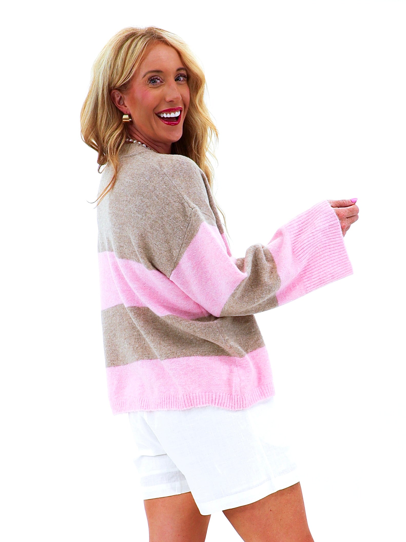 - Taupe and pink stripes