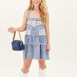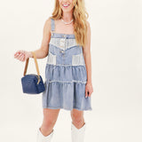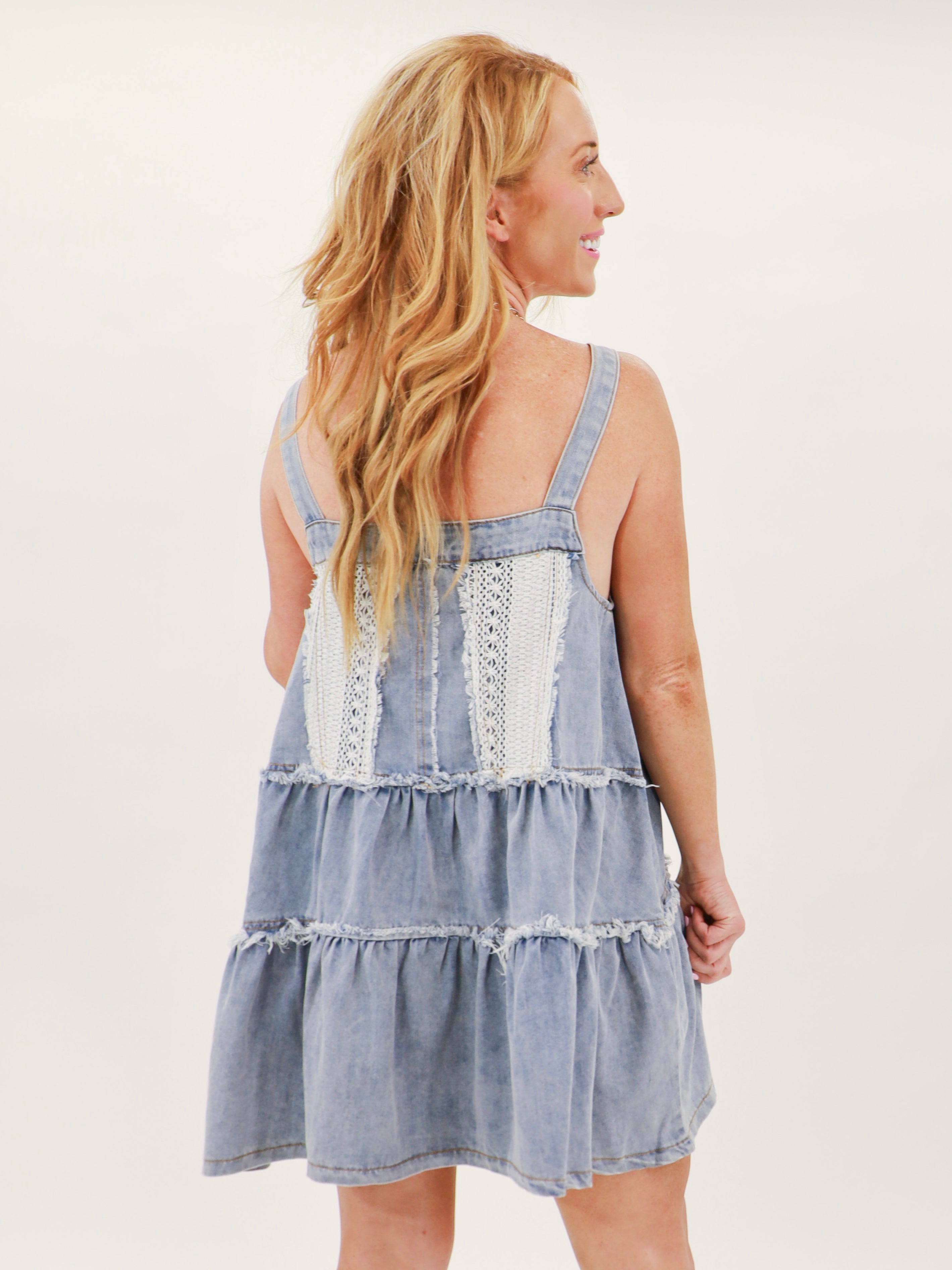 This dress is the ultimate denim edition! The perfect companion for any event, especially if you're looking for some fun and flirtatious vibes. Pair it with knee-high boots for some country swing dancing or rock it with some cool chunky white addidas for coffee dates with your bestie.