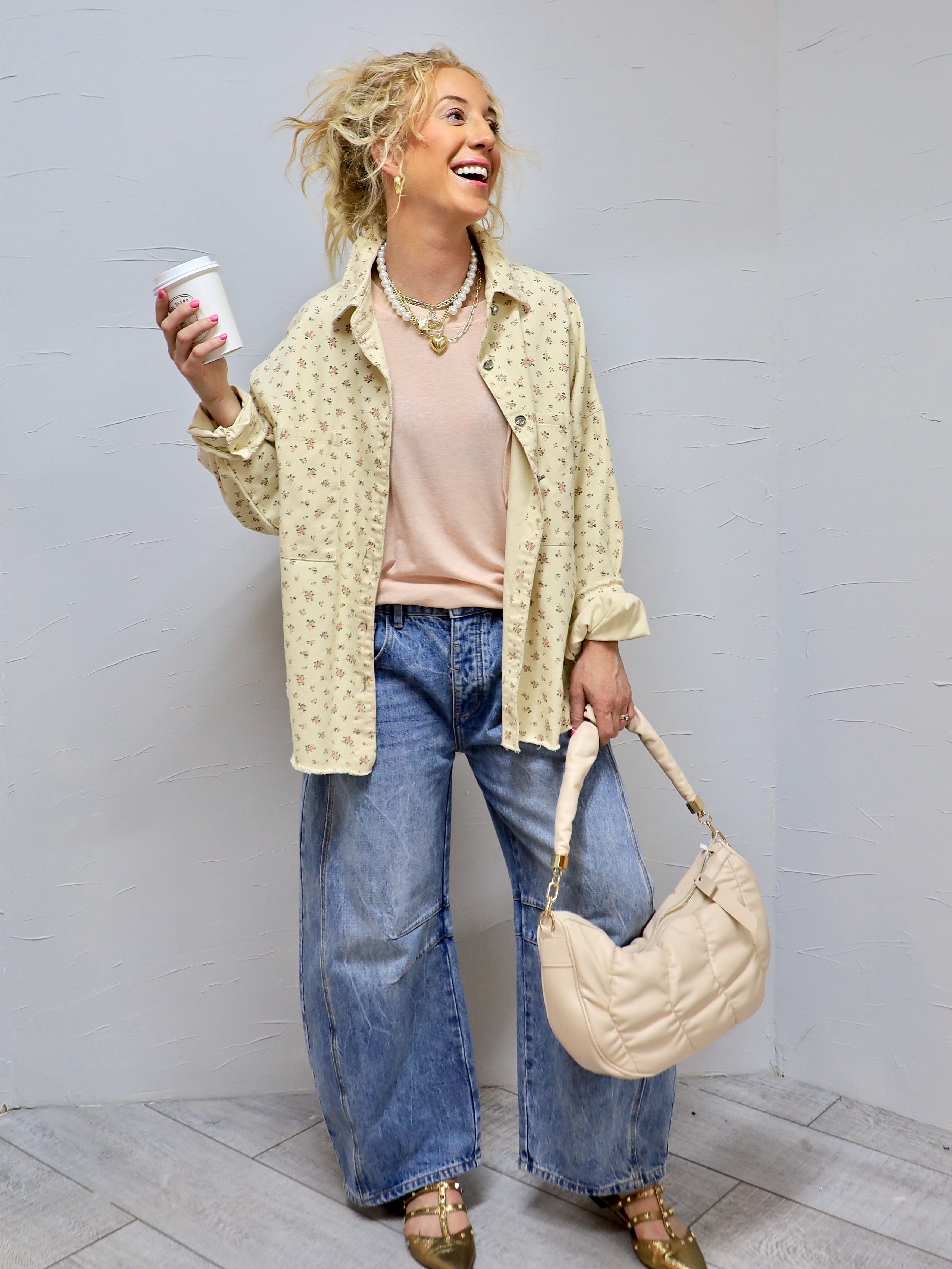 Introducing your newest go-to button down for spring! This top is ideal for transitioning your winter wardrobe - add some jeans and a plain white tee for a simple but adorable spring outfit!