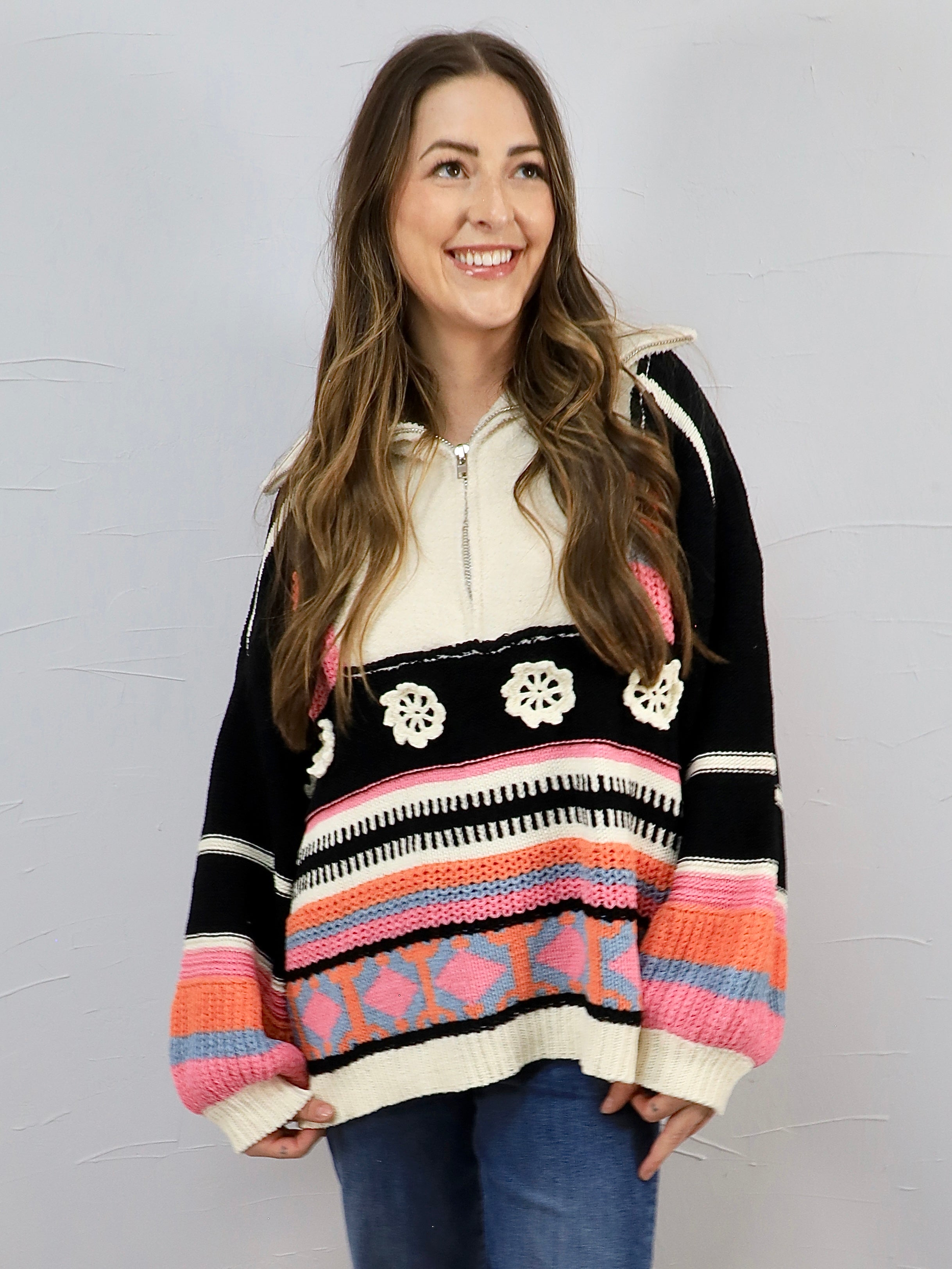 Introducing Zen's High Collar Pullover Sweater, the perfect addition to your wardrobe. Made with plush, oversized material and a unique pattern, this sweater is a dream come true. Trust us, this will be the only sweater you need this year.