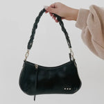 - Two straps: One braided shoulder strap and another neutral patterned crossbody canvas strap