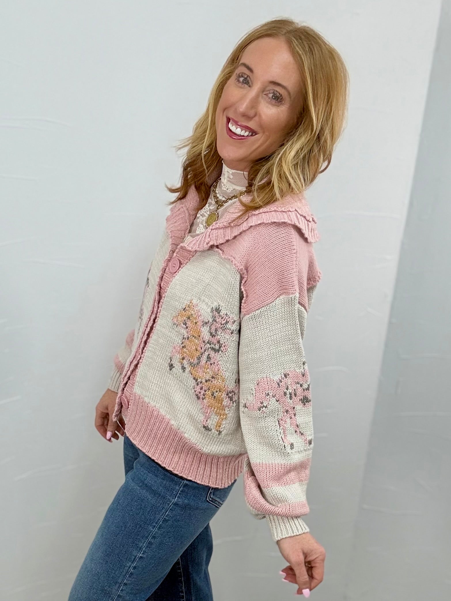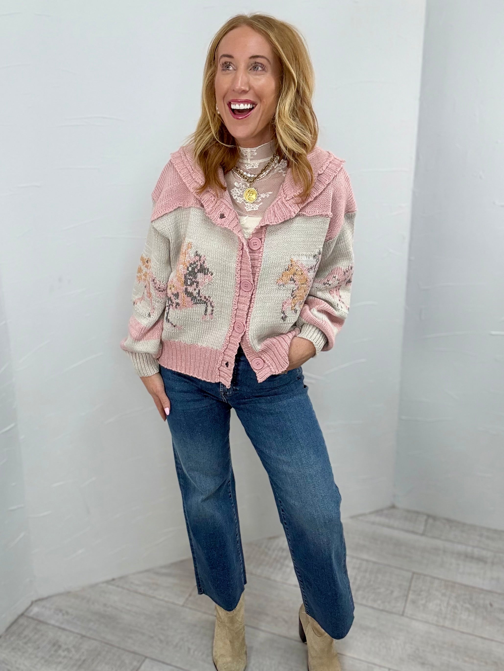 This whimsical knit cardigan is perfect for adding a little personality to your everyday denim or dressing up for brunch, work, or weekend outings. Layer it over lace tops, tees, or dresses for a cozy statement piece that feels both feminine and fun. Hand wash