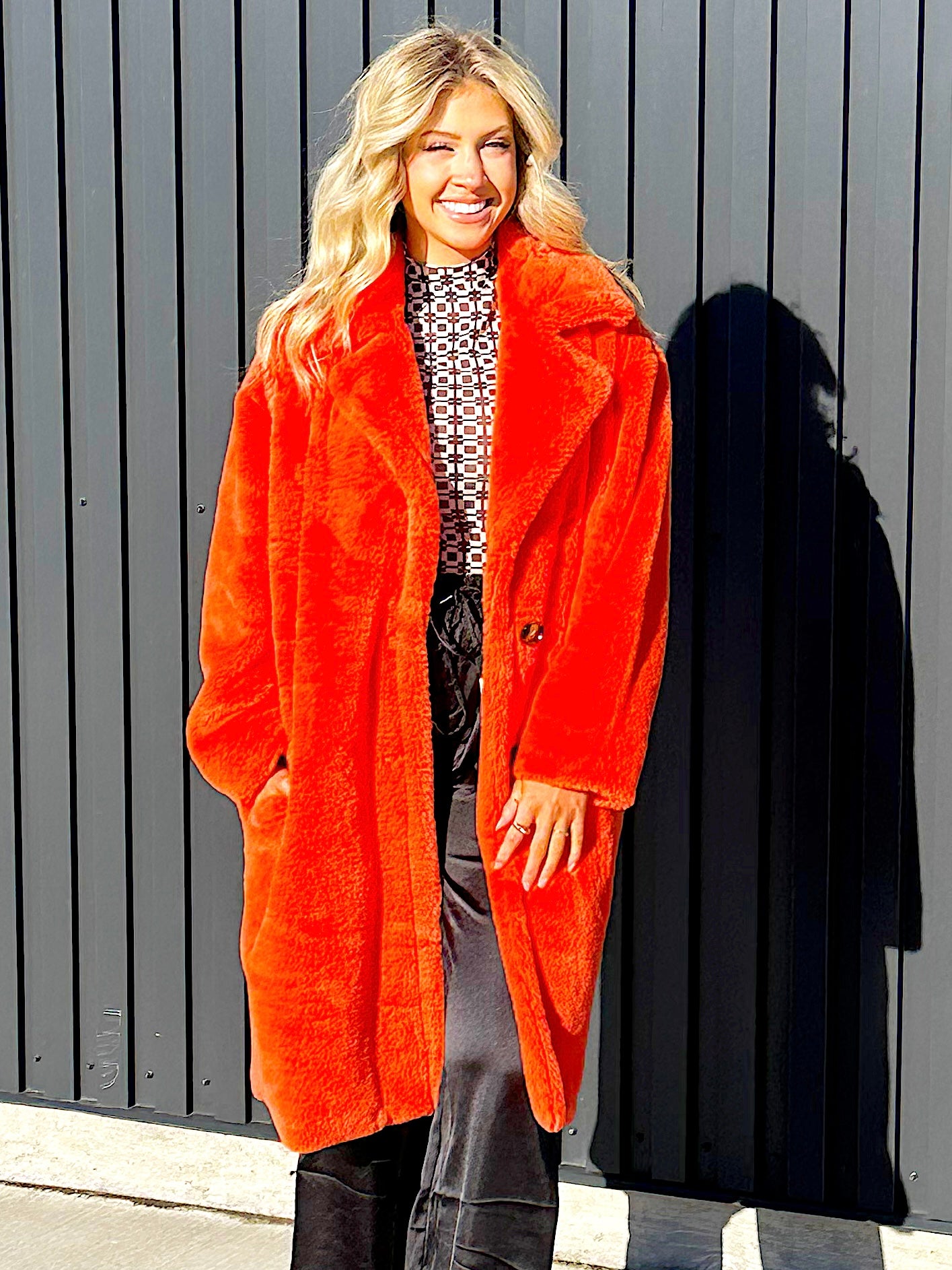 - Bold coral in color